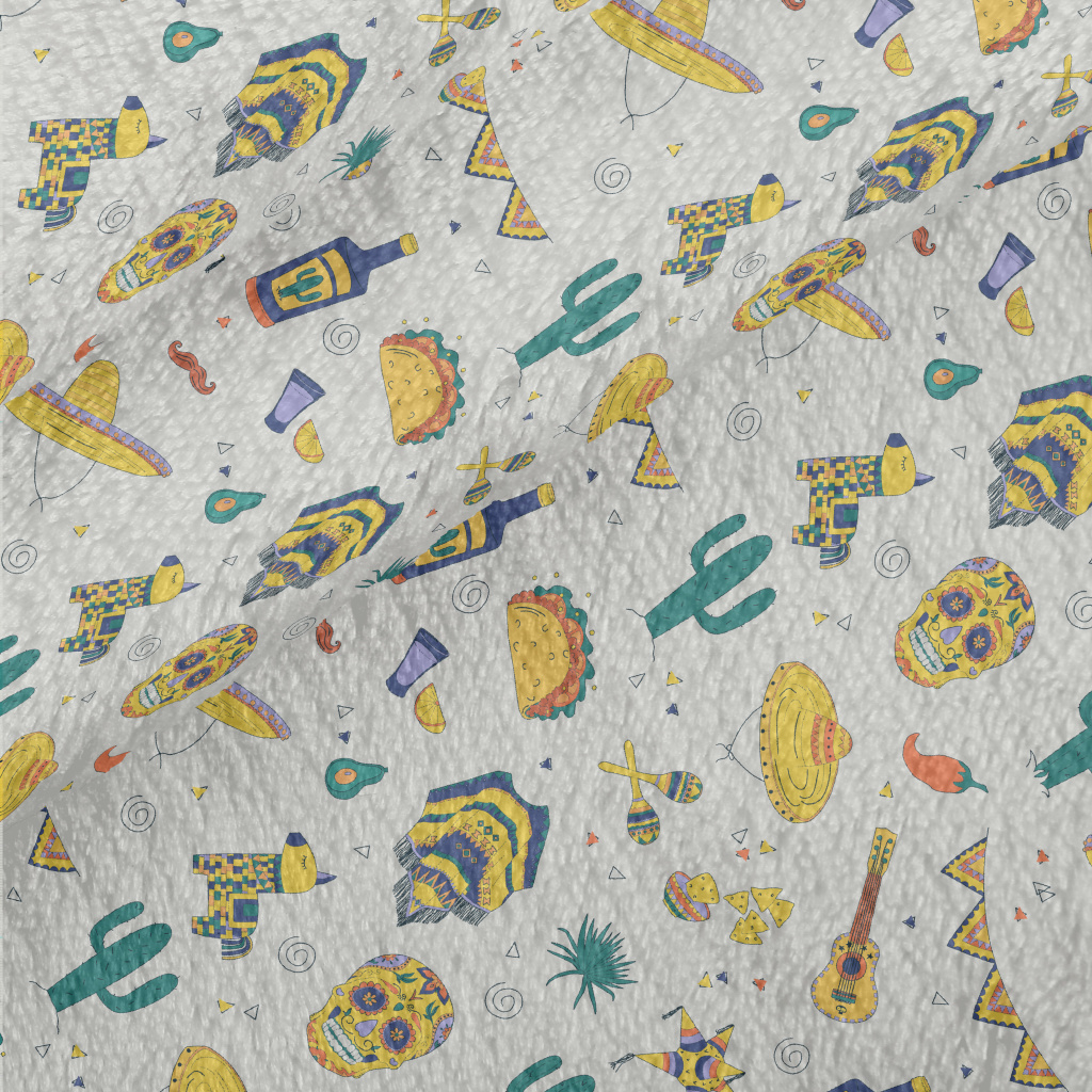 墨西哥頭骨帽子仙人掌法蘭絨(幅寬150公分)