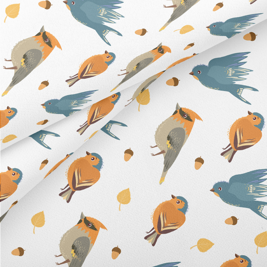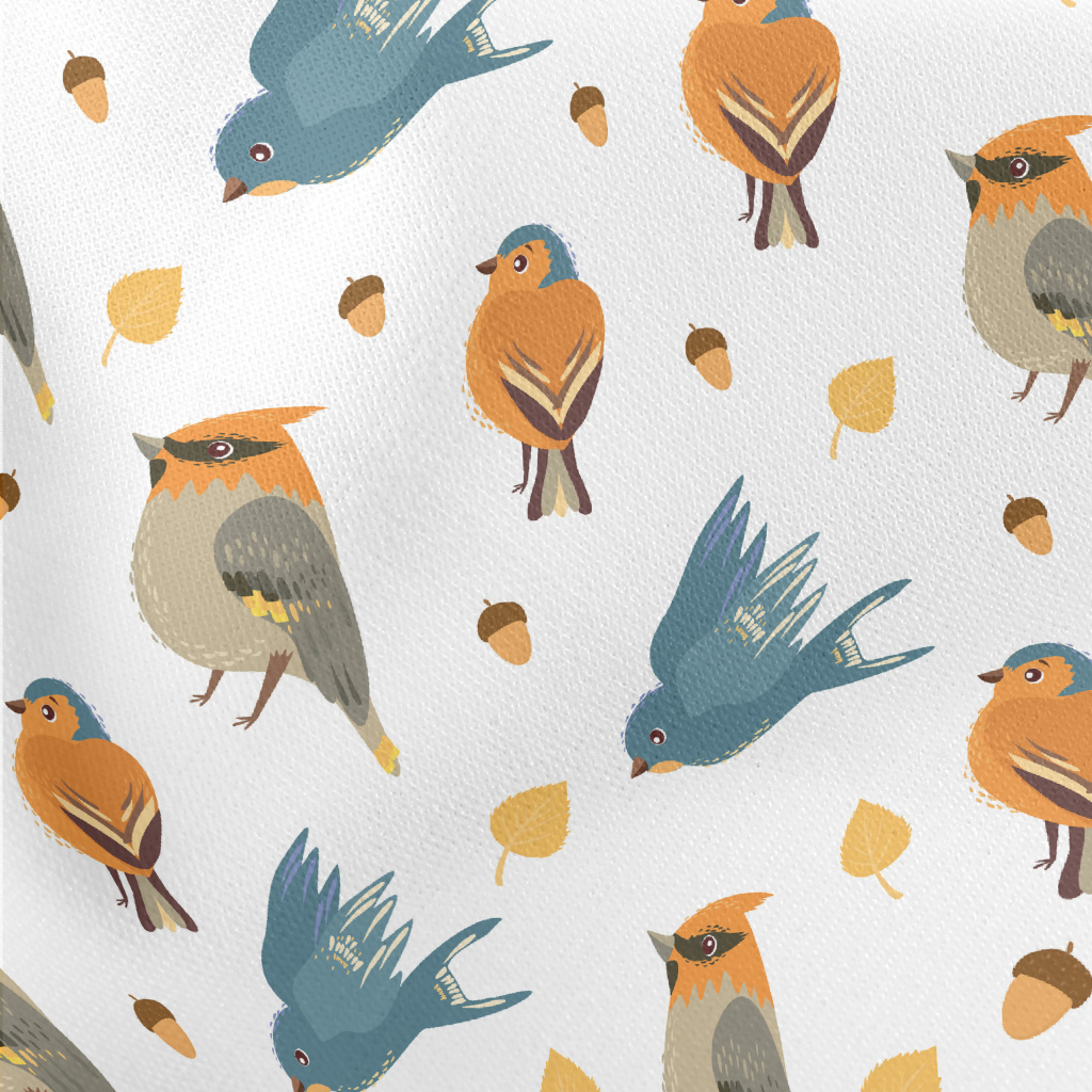 手繪可愛小鳥和松果薄棉布(幅寬150公分)