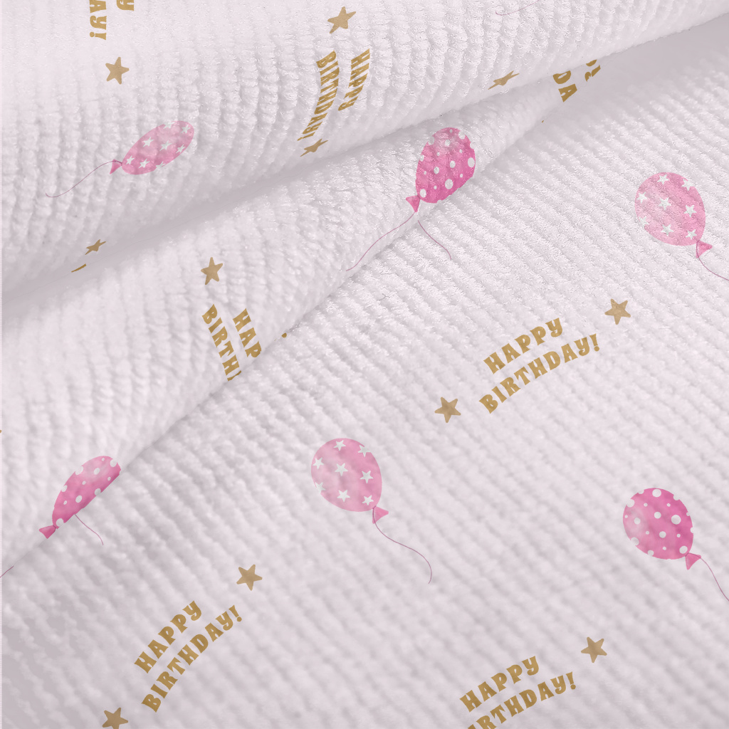 生日粉色圓點氣球毛巾布(幅寬160公分)