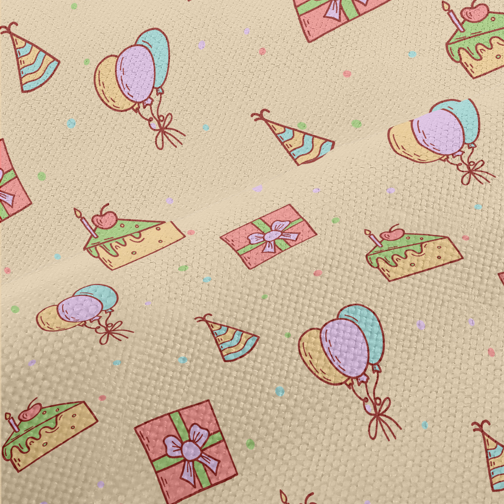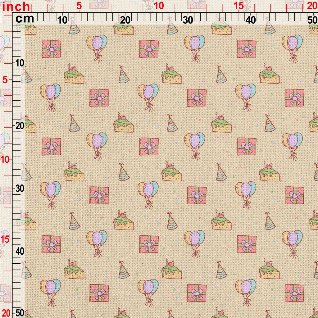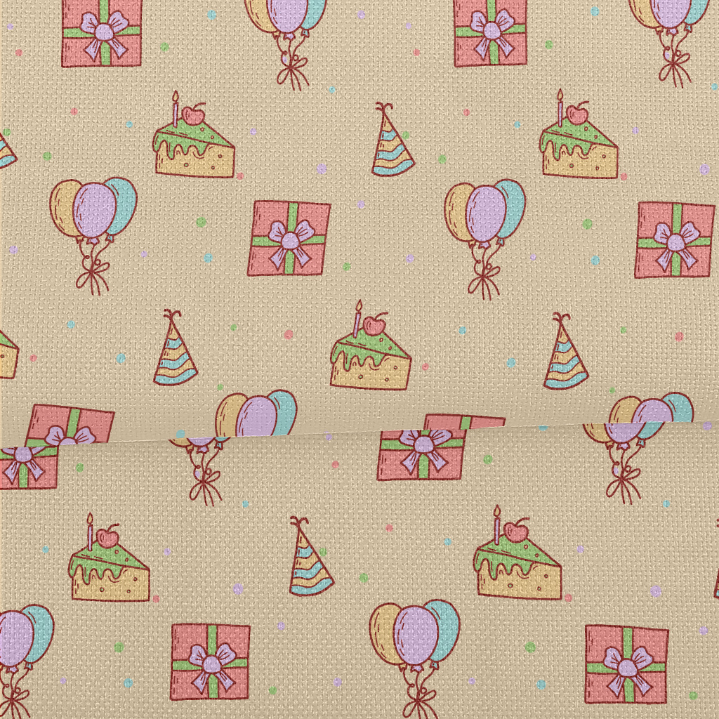 可愛生日蛋糕禮物氣球麻布(幅寬150公分)