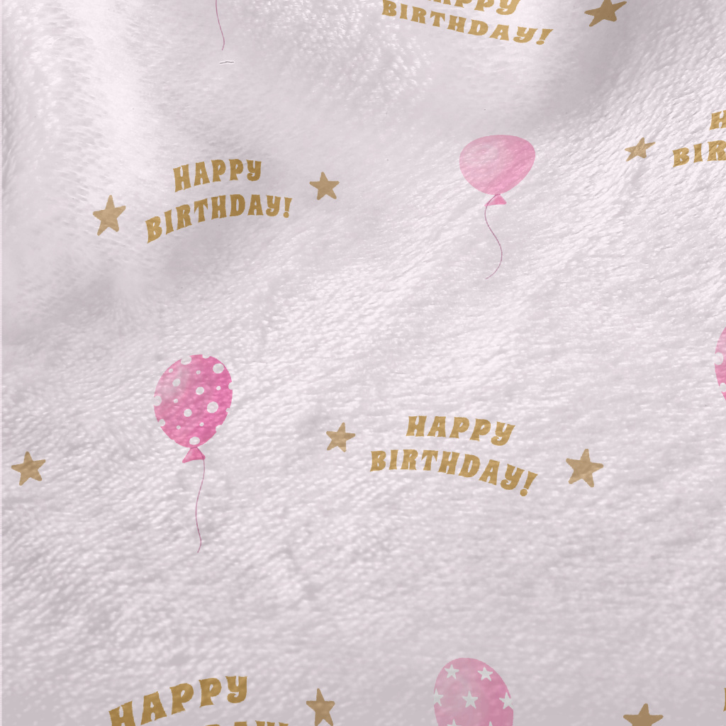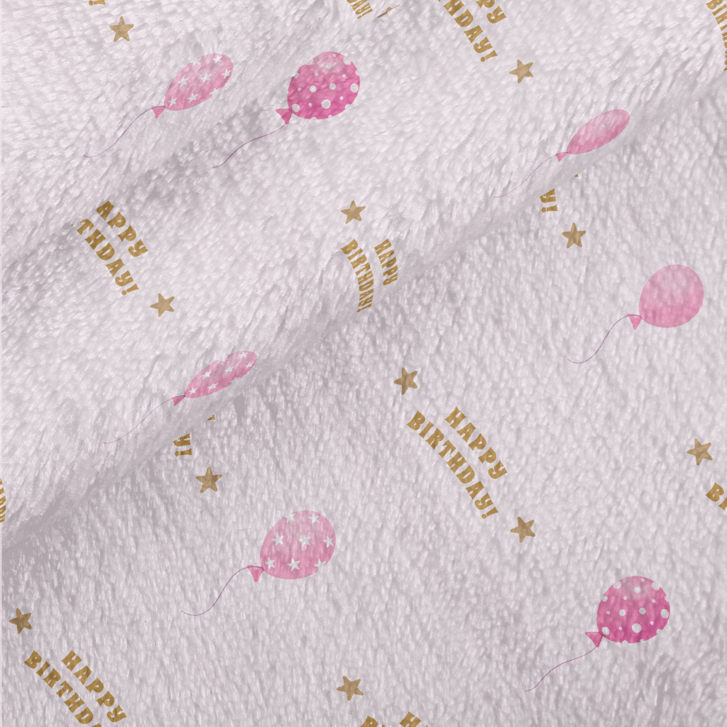 生日粉色圓點氣球法蘭絨(幅寬150公分)