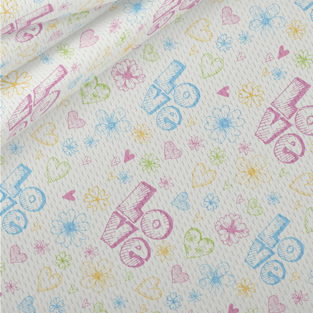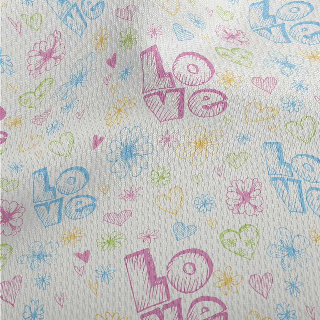 愛情英文與愛心花朵鳥眼布(幅寬160公分)