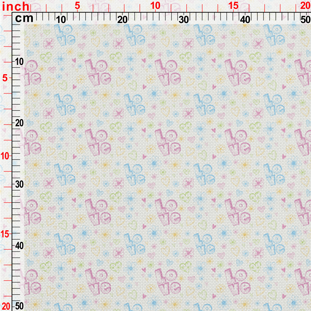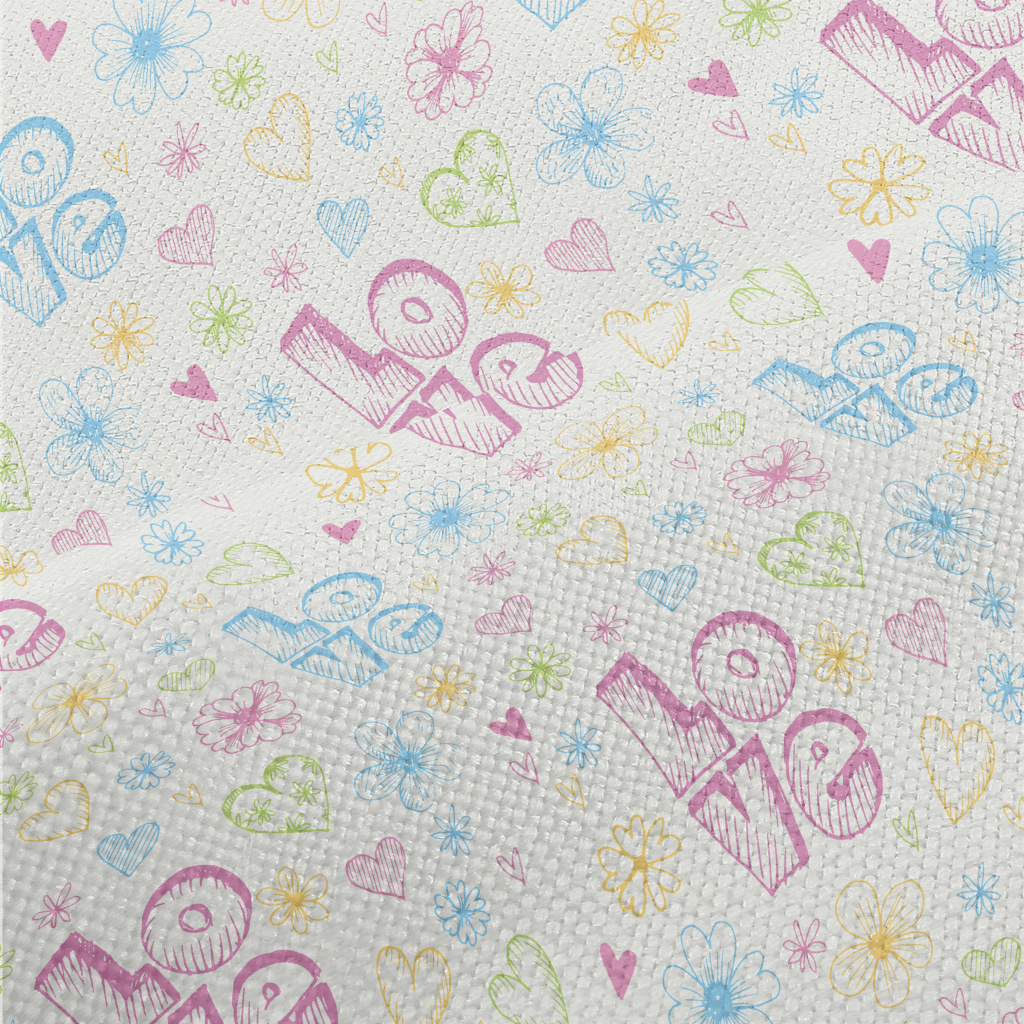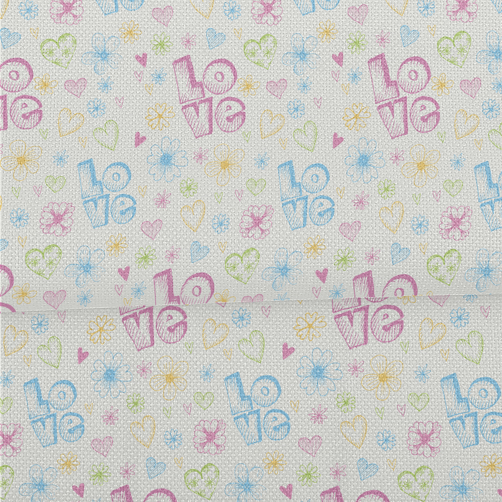 愛情英文與愛心花朵麻布(幅寬150公分)