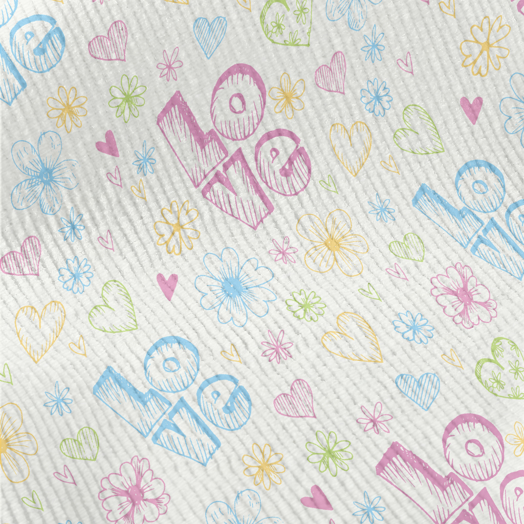 愛情英文與愛心花朵燈芯絨(幅寬150公分)