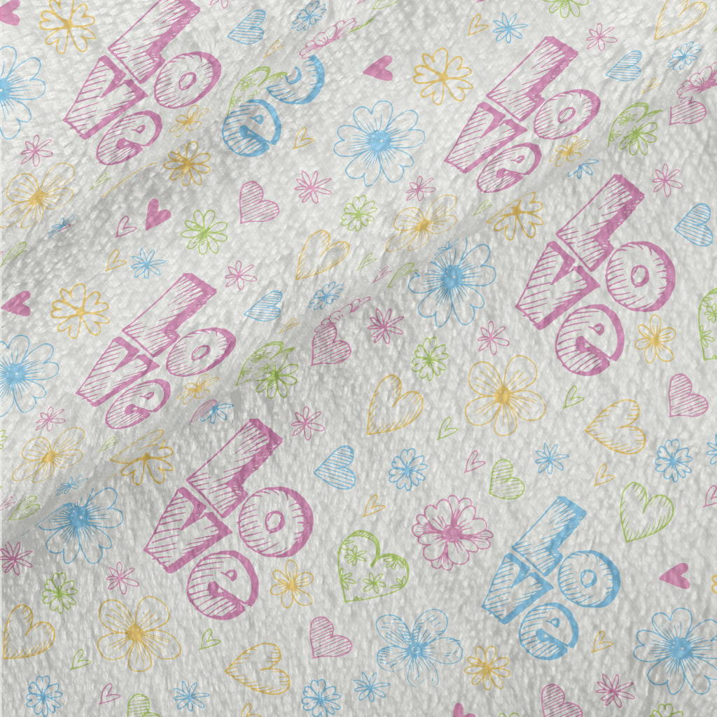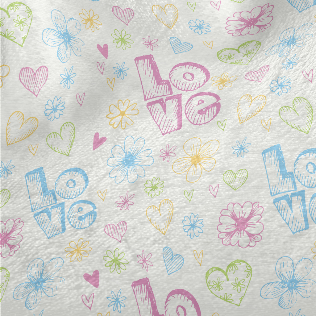 愛情英文與愛心花朵法蘭絨(幅寬150公分)