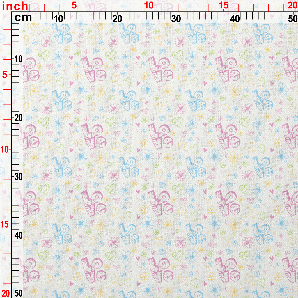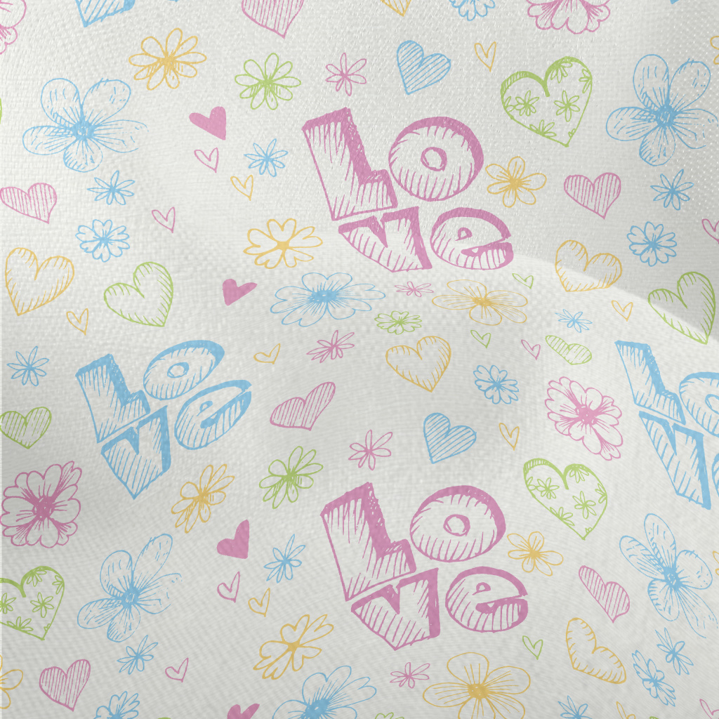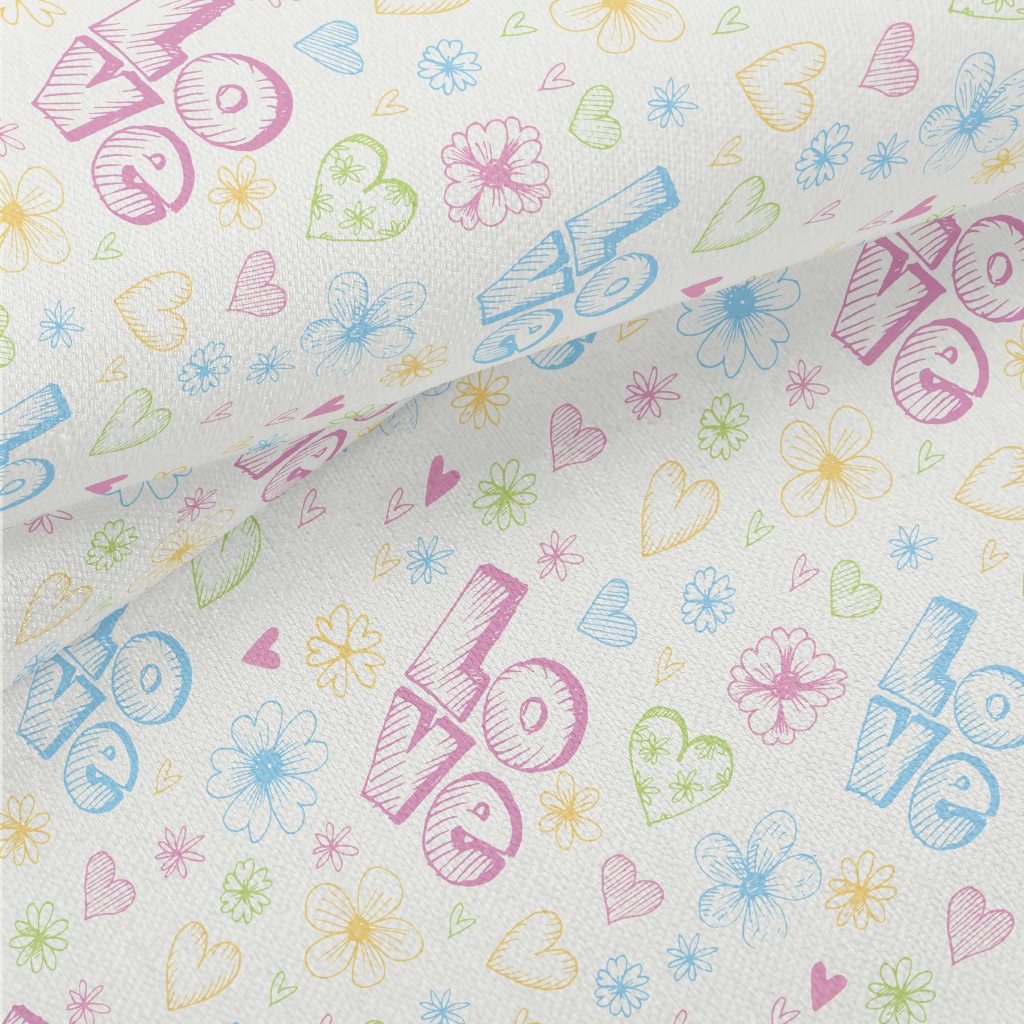 愛情英文與愛心花朵竹節麻(幅寬150公分)