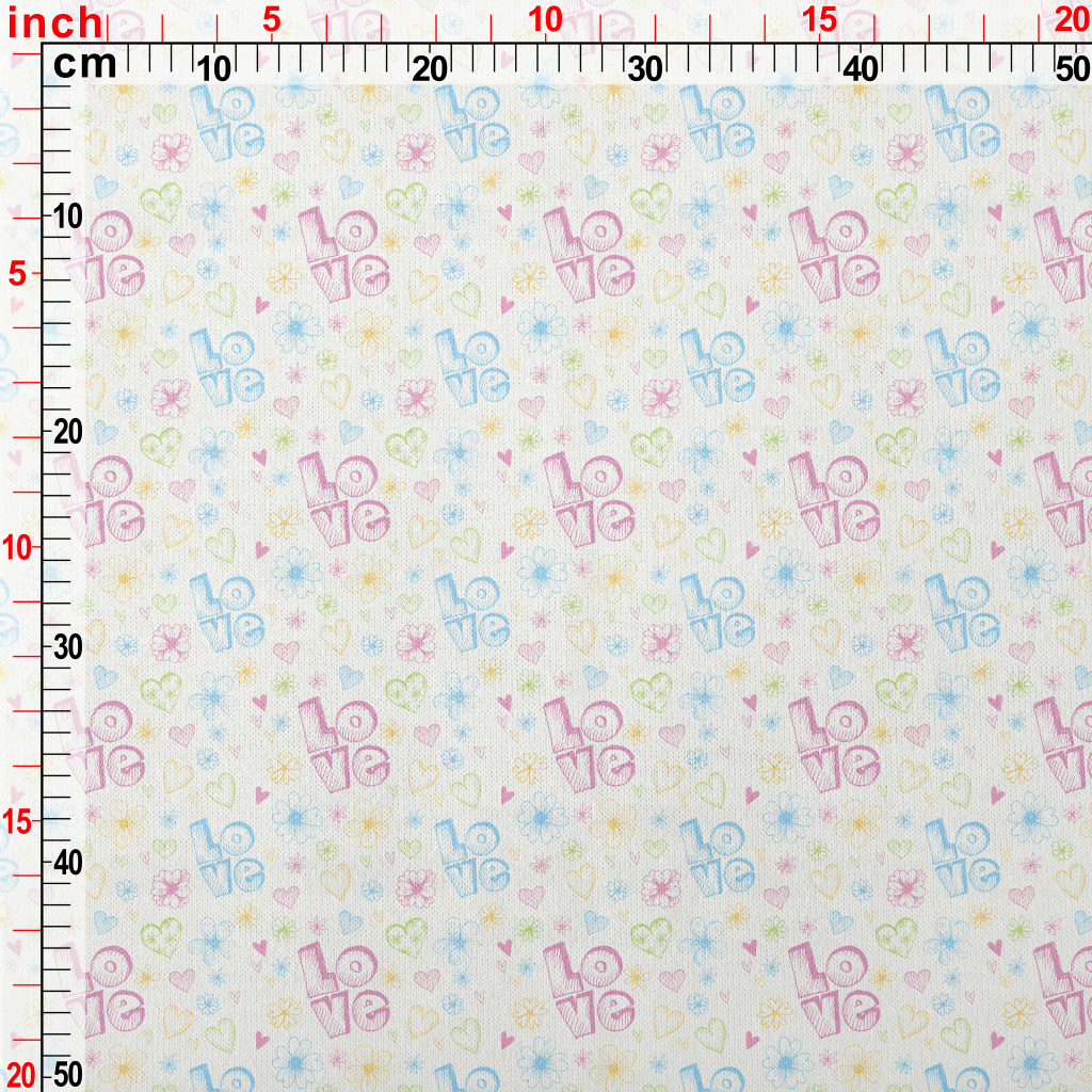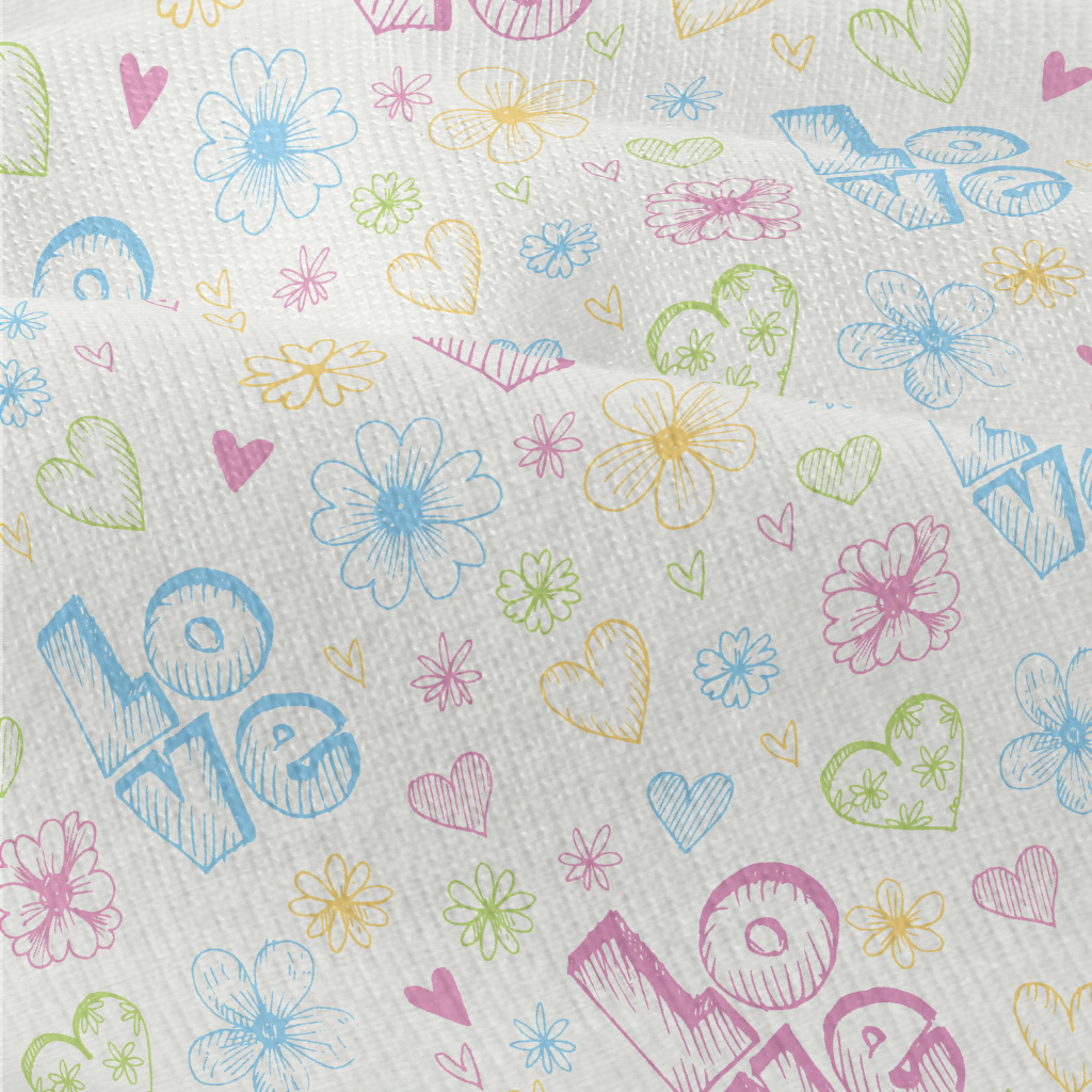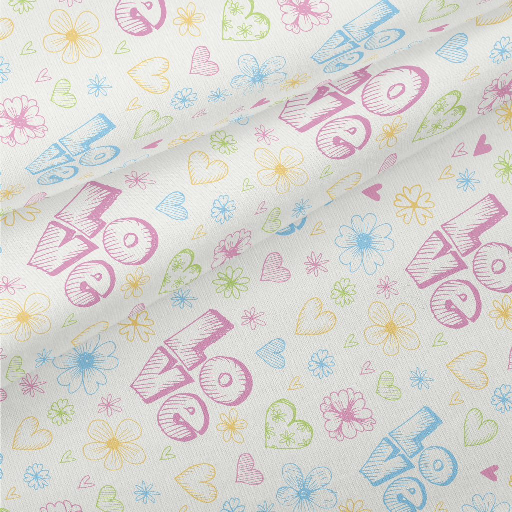 愛情英文與愛心花朵仿棉布(幅寬150公分)