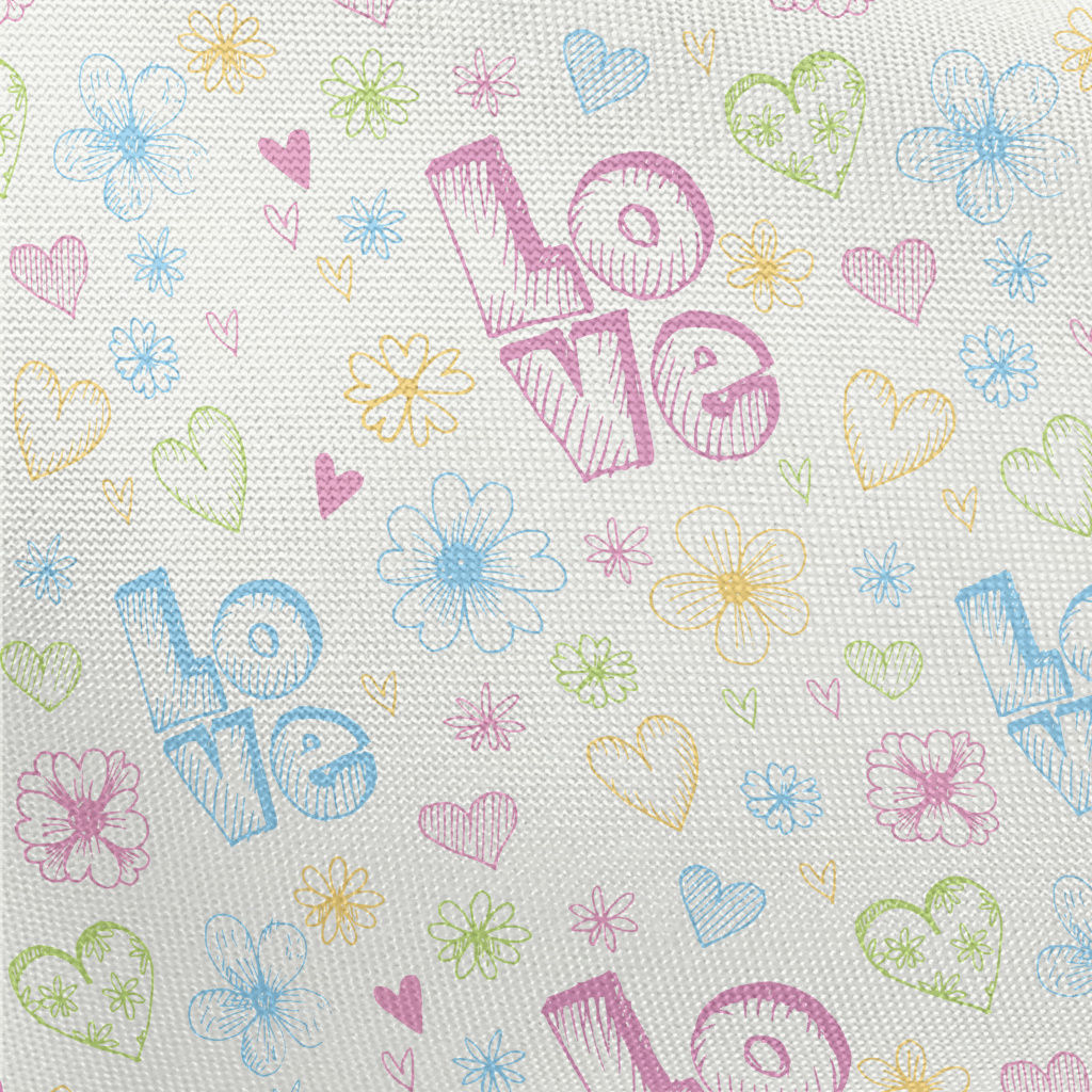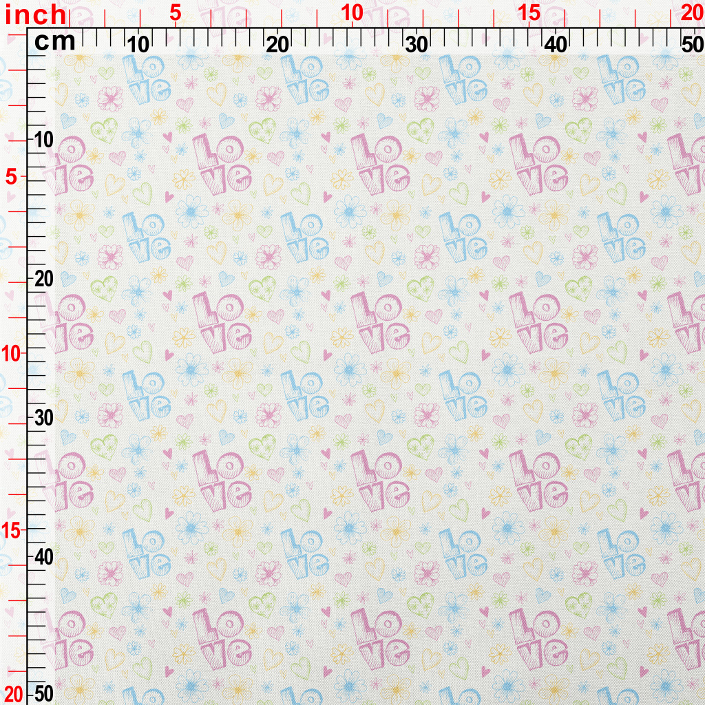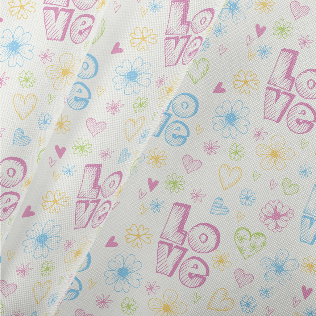 愛情英文與愛心花朵春亞紡(幅寬160公分)