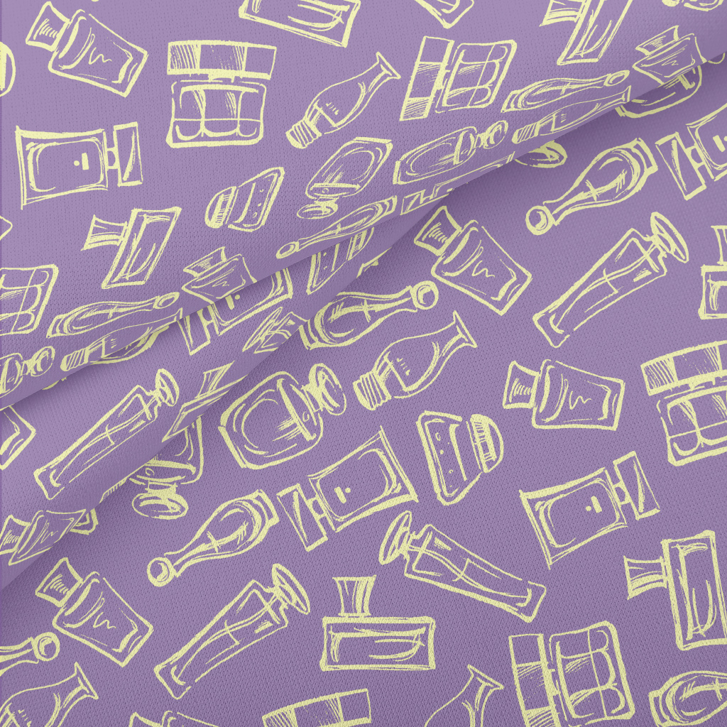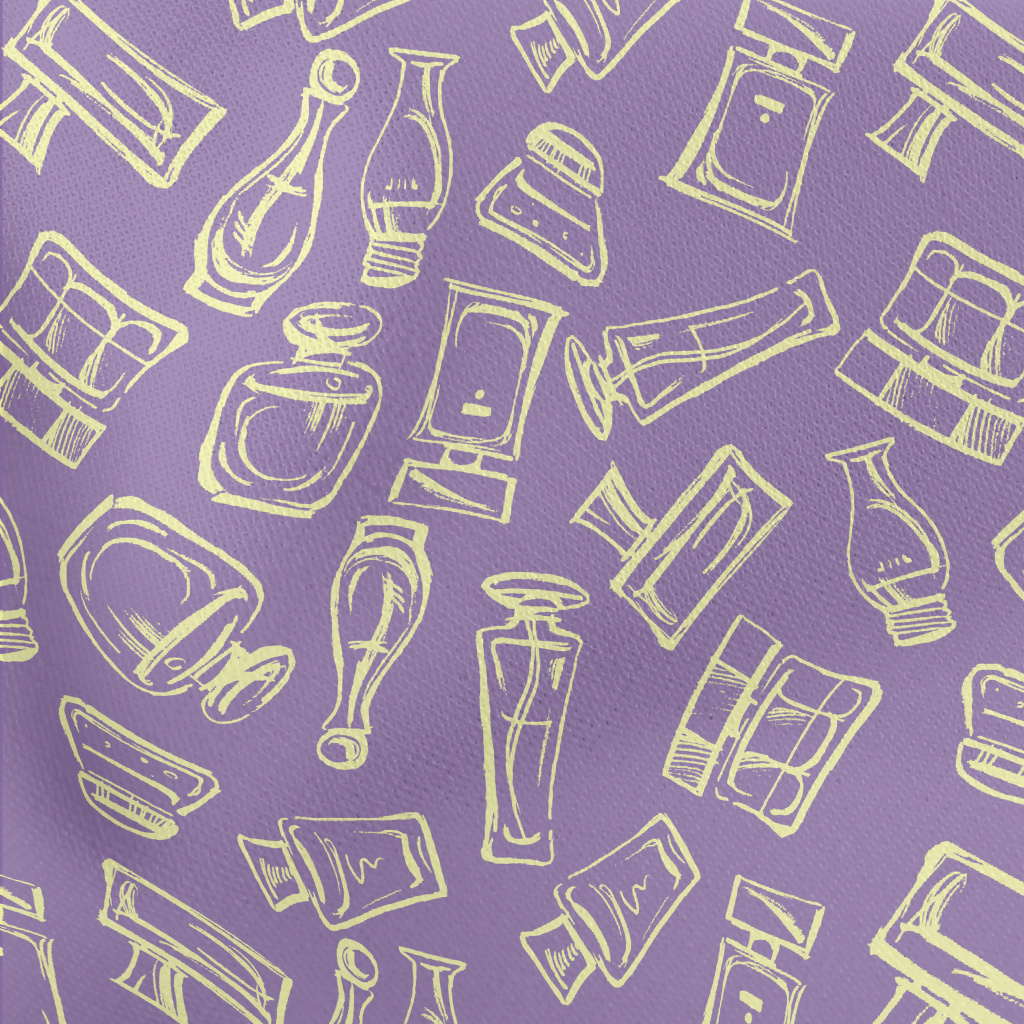 塗鴉各種女性香水瓶薄棉布(幅寬150公分)