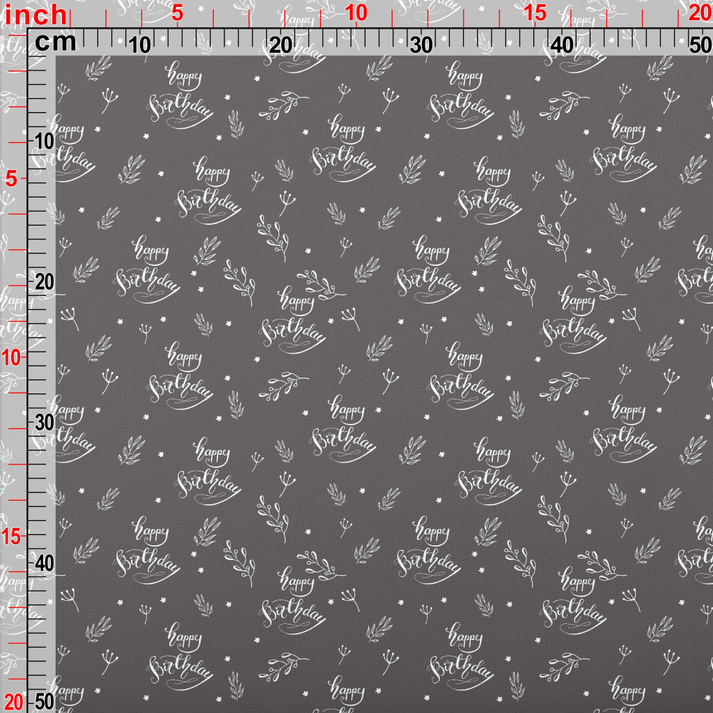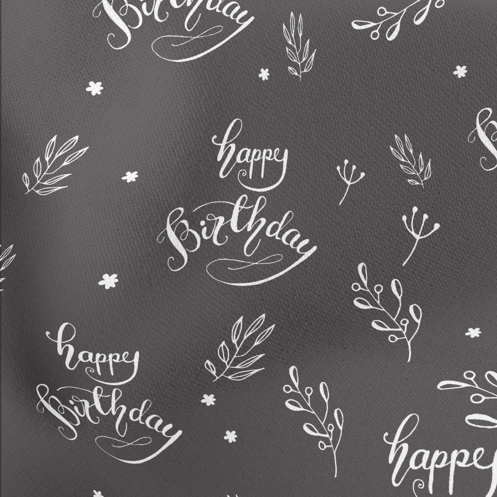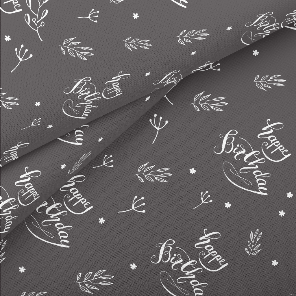 生日快樂英文與草葉薄棉布(幅寬150公分)