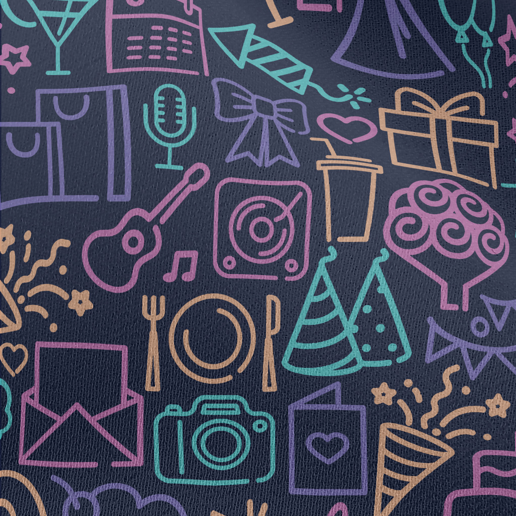 塗鴉彩色生日派對圖案雪紡布(幅寬150公分)