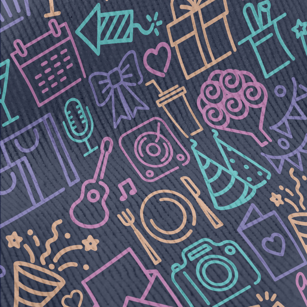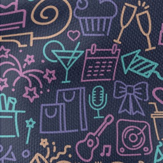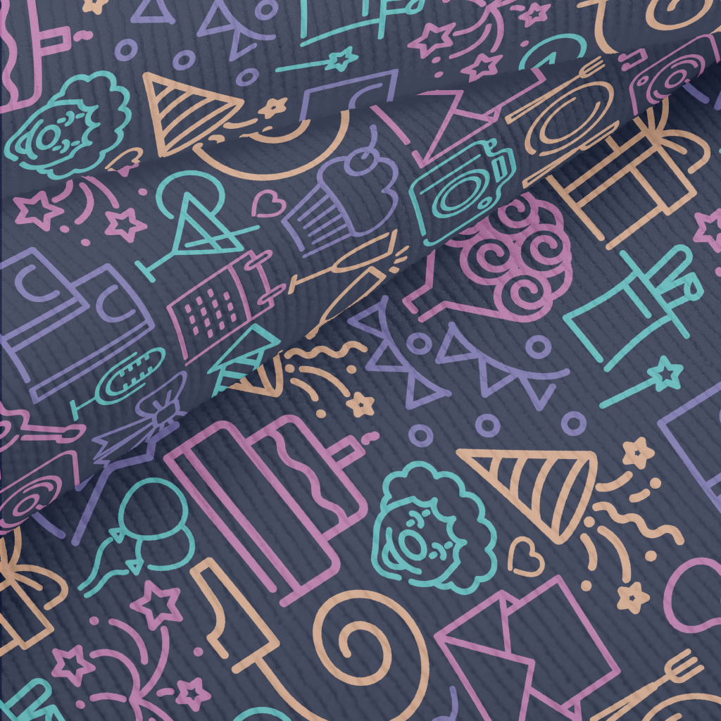 塗鴉彩色生日派對圖案燈芯絨(幅寬150公分)