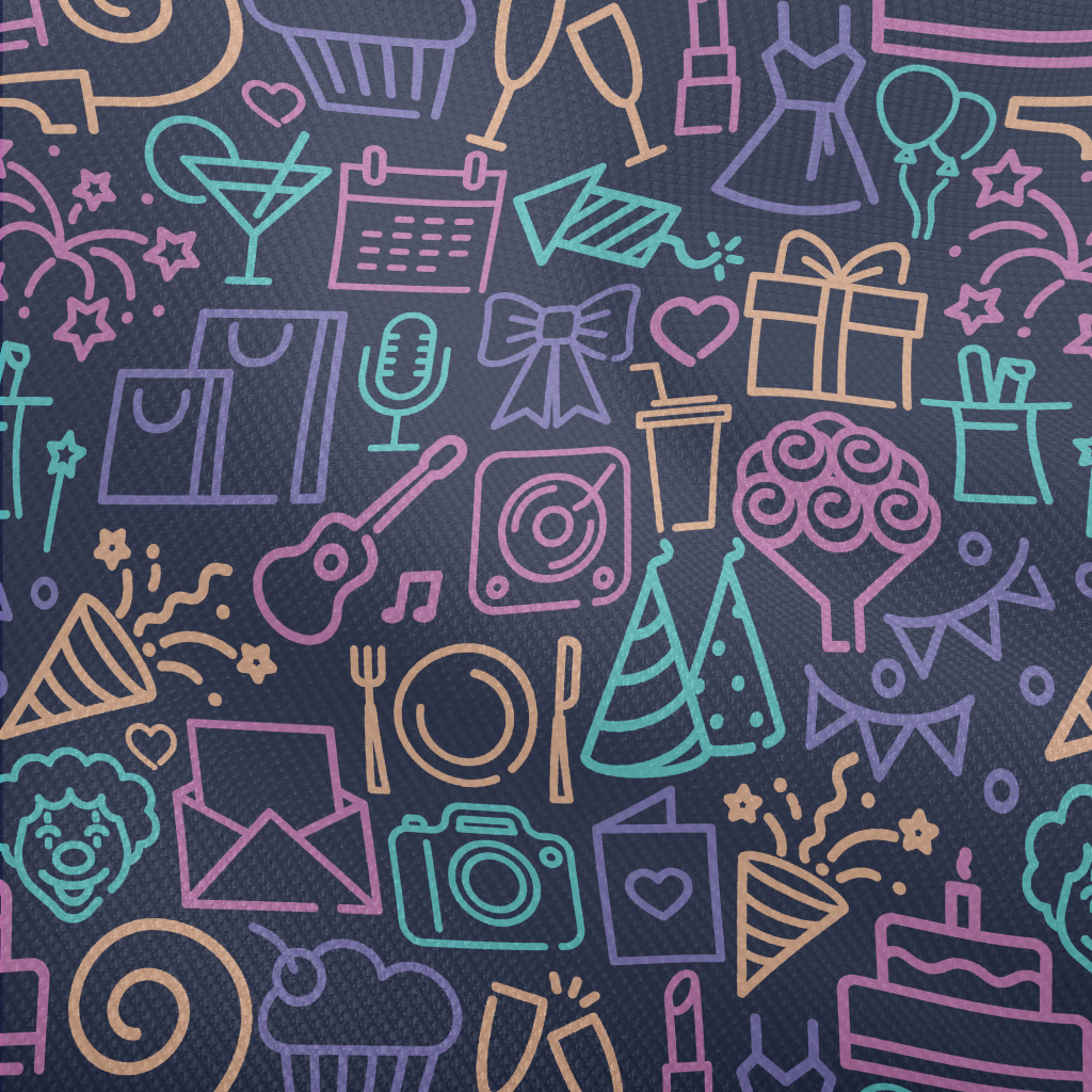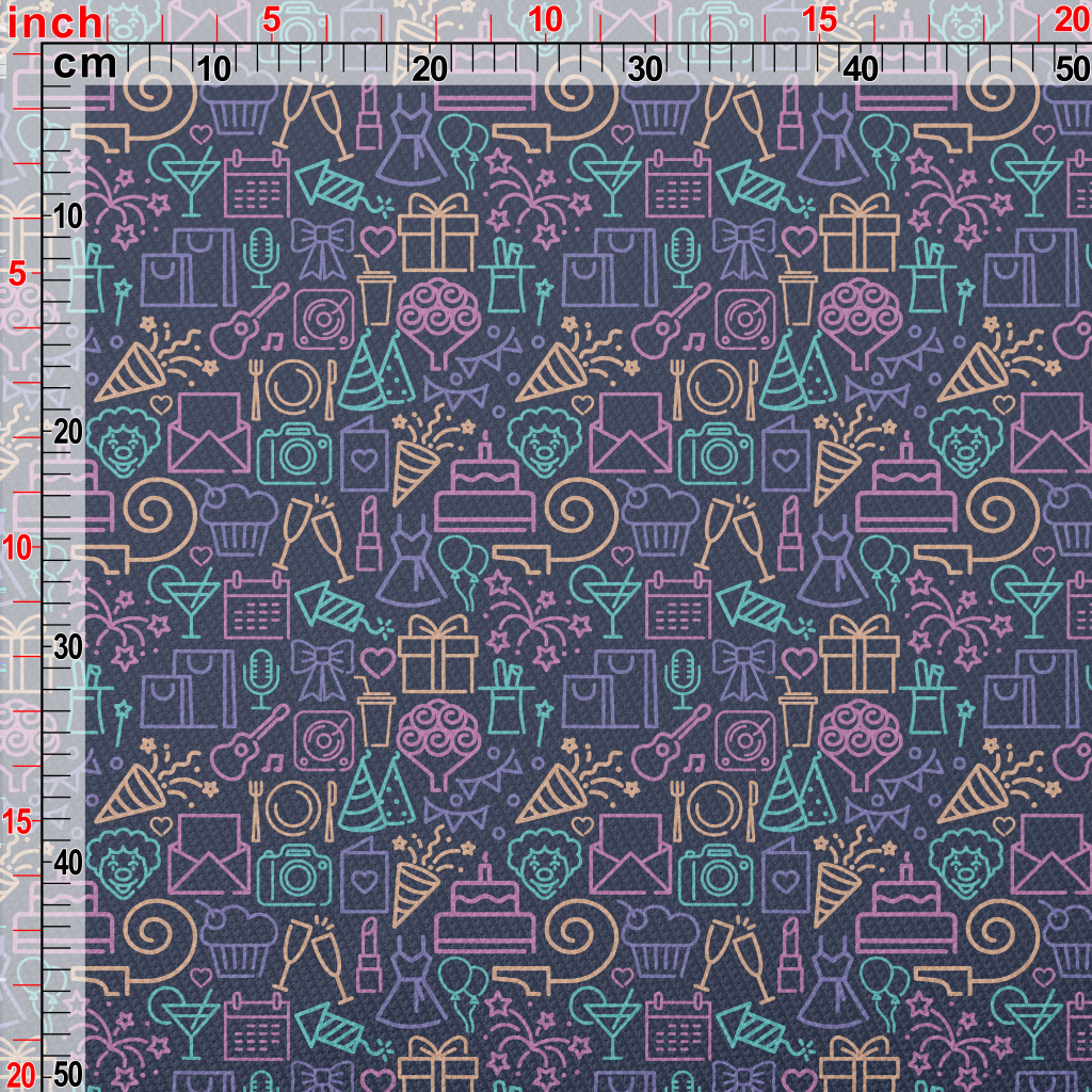 塗鴉彩色生日派對圖案雙斜布(幅寬150公分)