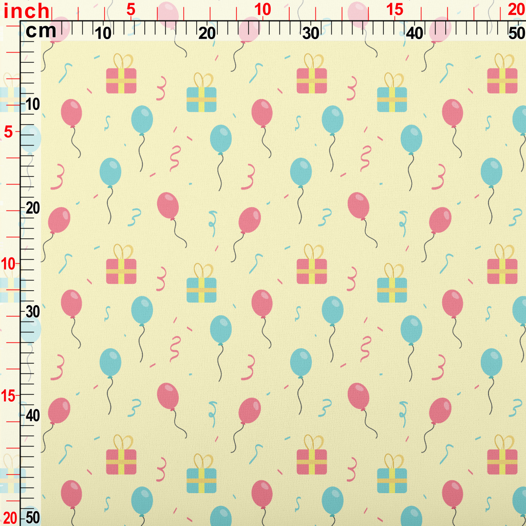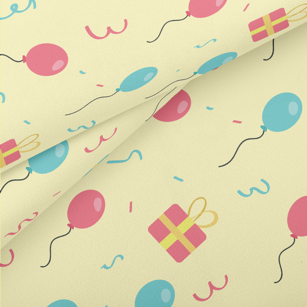 粉色藍色氣球和禮物羅馬布(幅寬160公分)