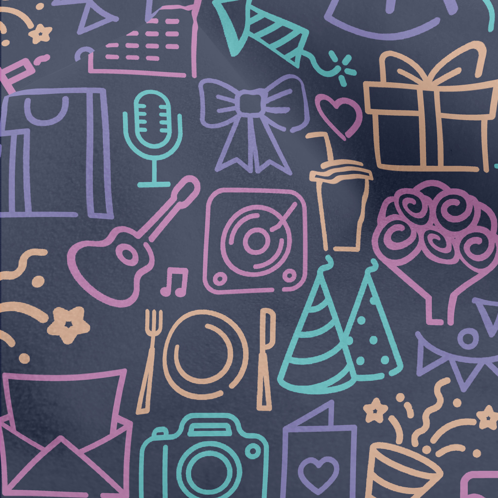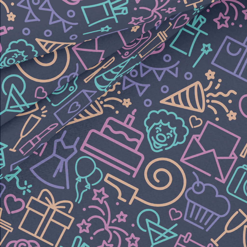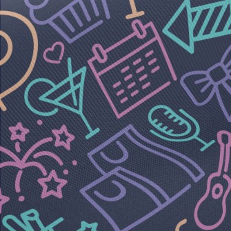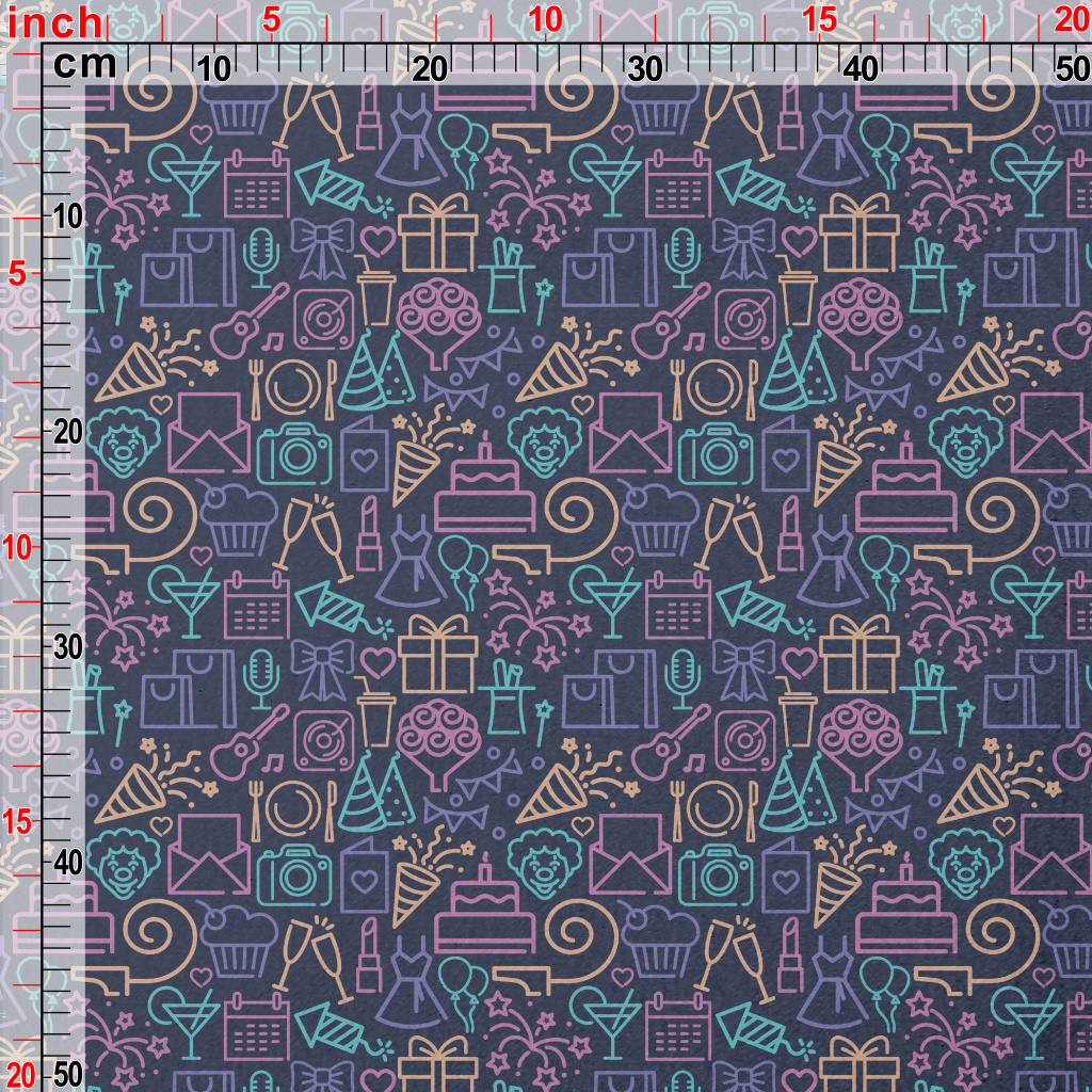塗鴉彩色生日派對圖案水晶絨(幅寬160公分)