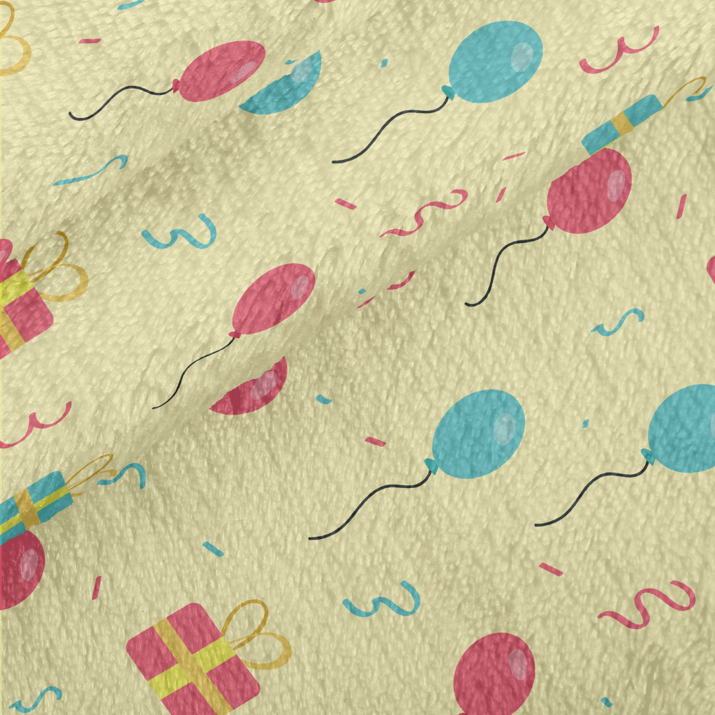 粉色藍色氣球和禮物法蘭絨(幅寬150公分)