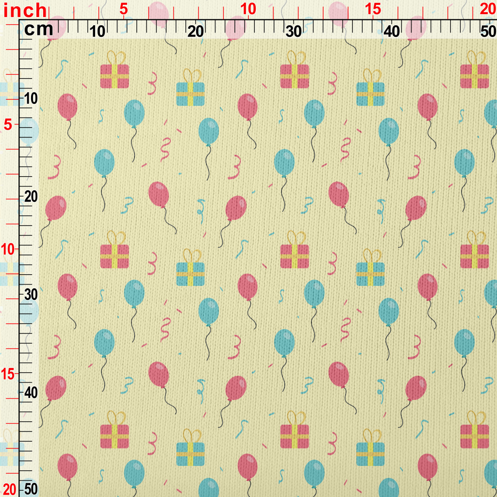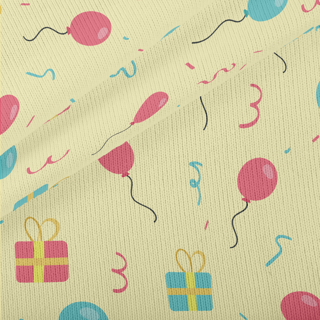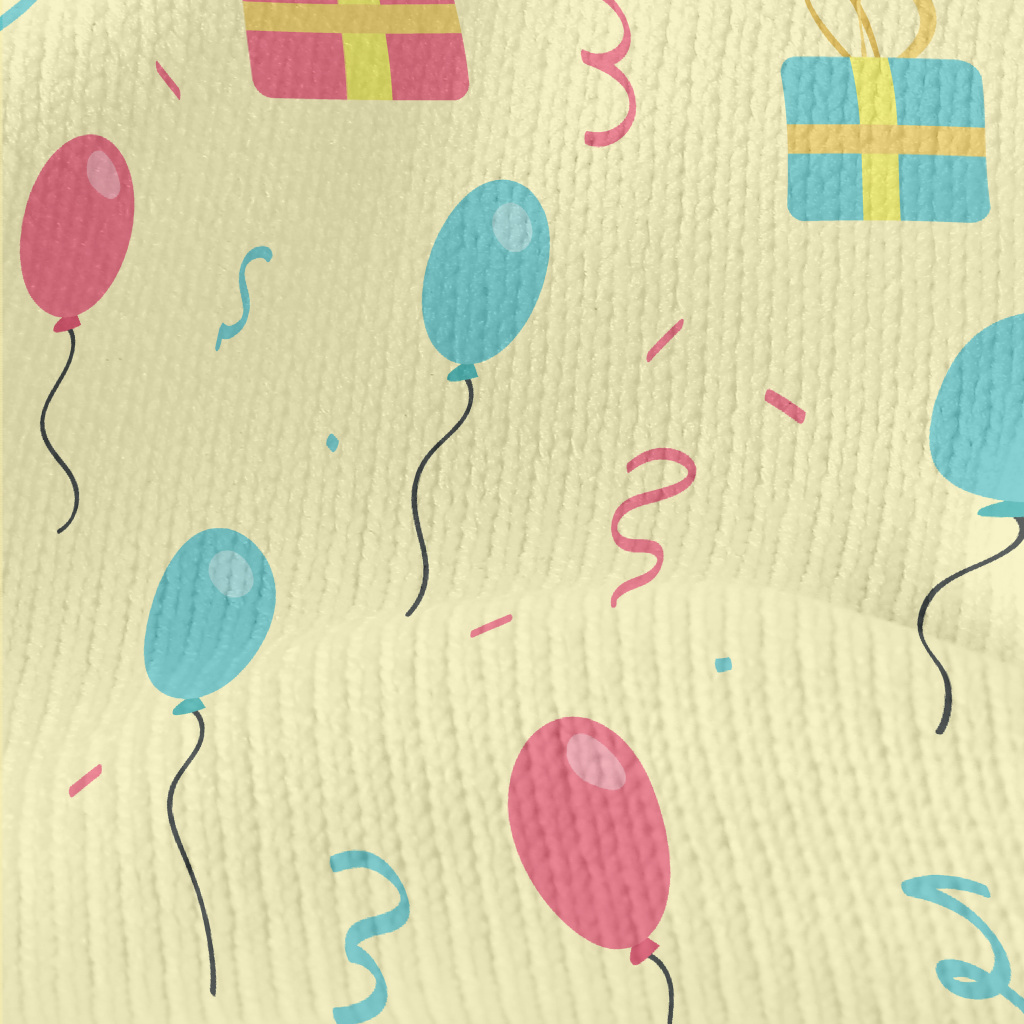 粉色藍色氣球和禮物仿毛衣布(幅寬150公分)