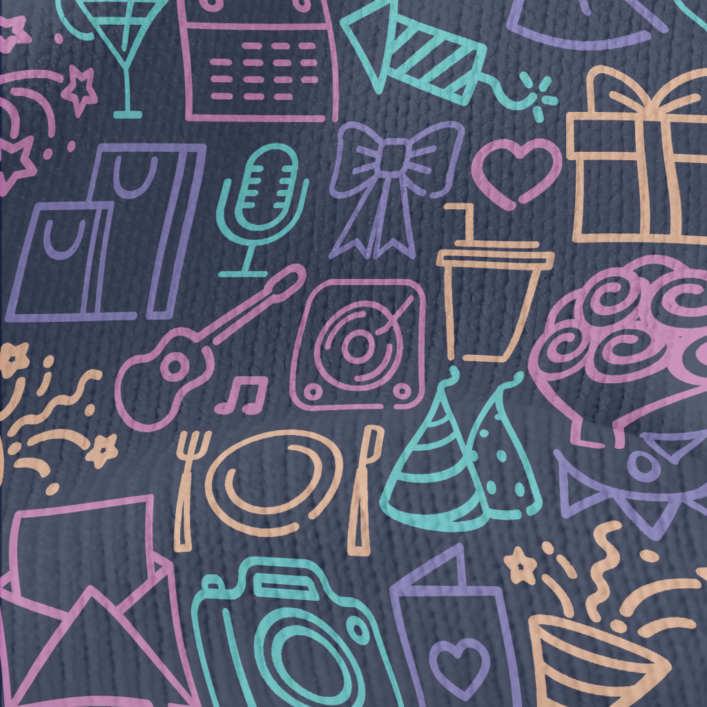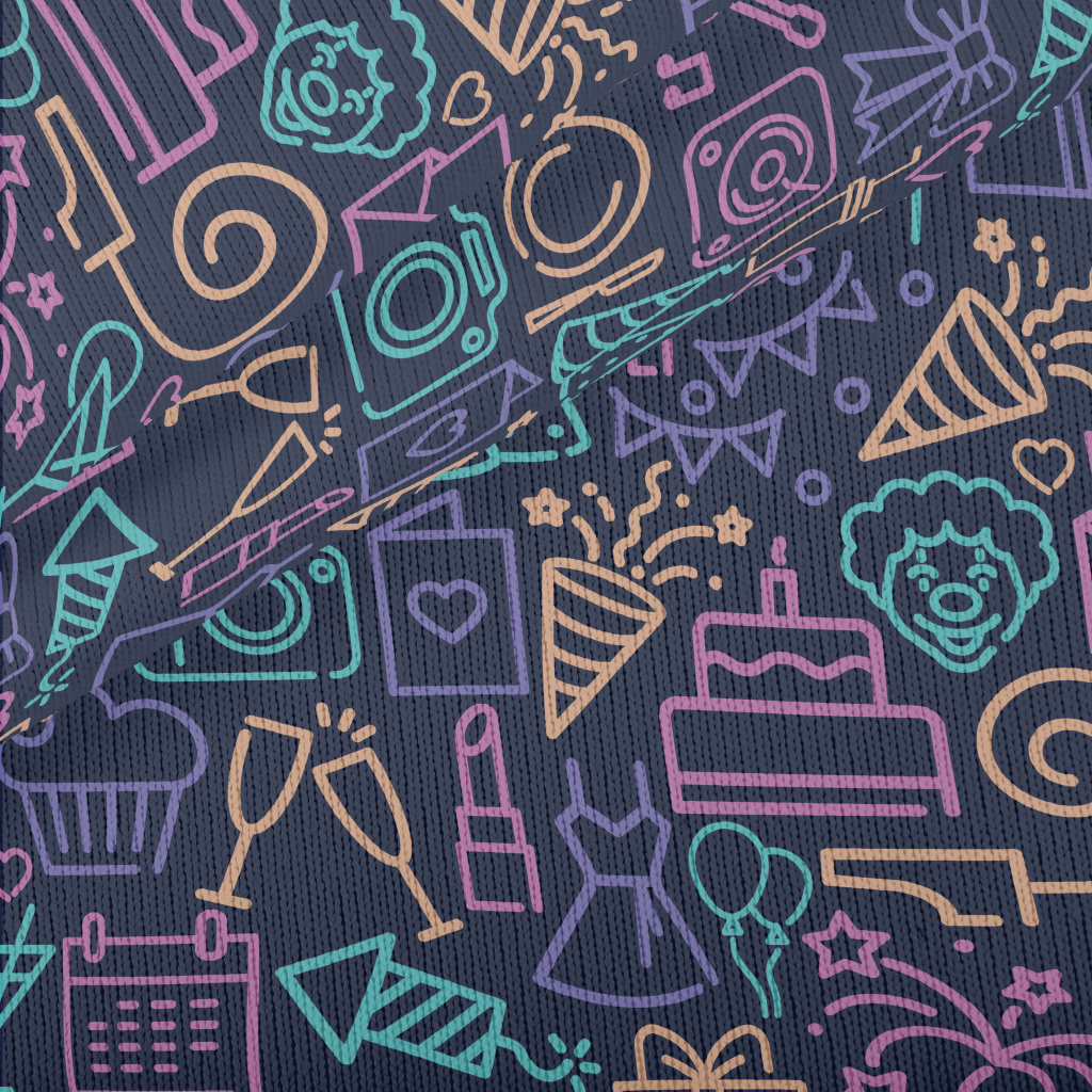 塗鴉彩色生日派對圖案仿毛衣布(幅寬150公分)