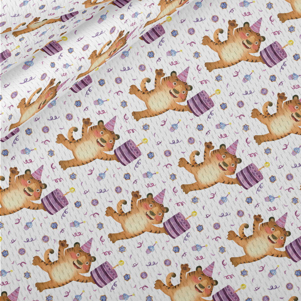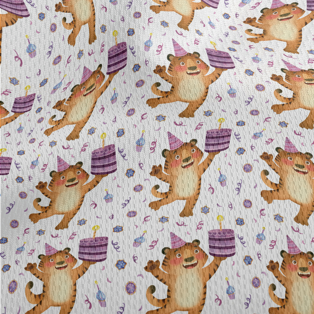 快樂老虎拿生日蛋糕鳥眼布(幅寬160公分)