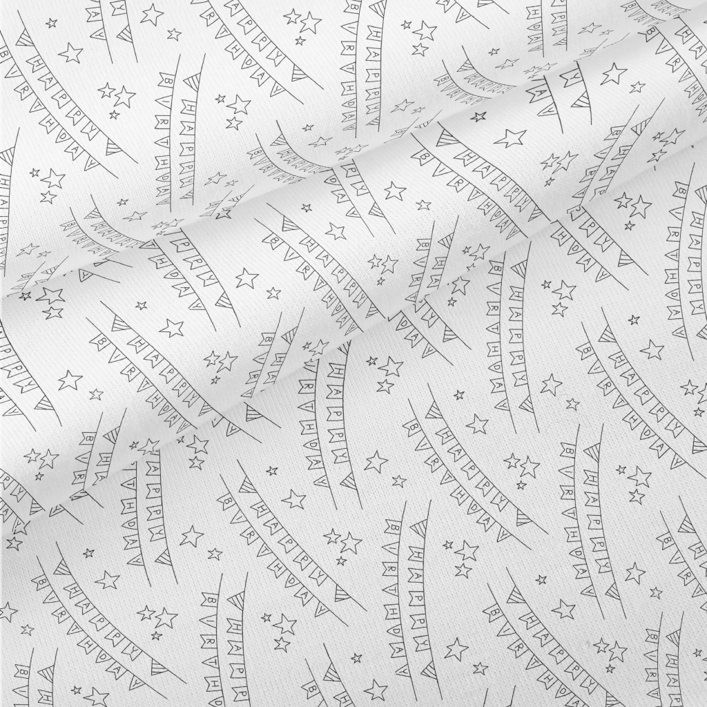 簡約生日快樂英文與星星仿棉布(幅寬150公分)