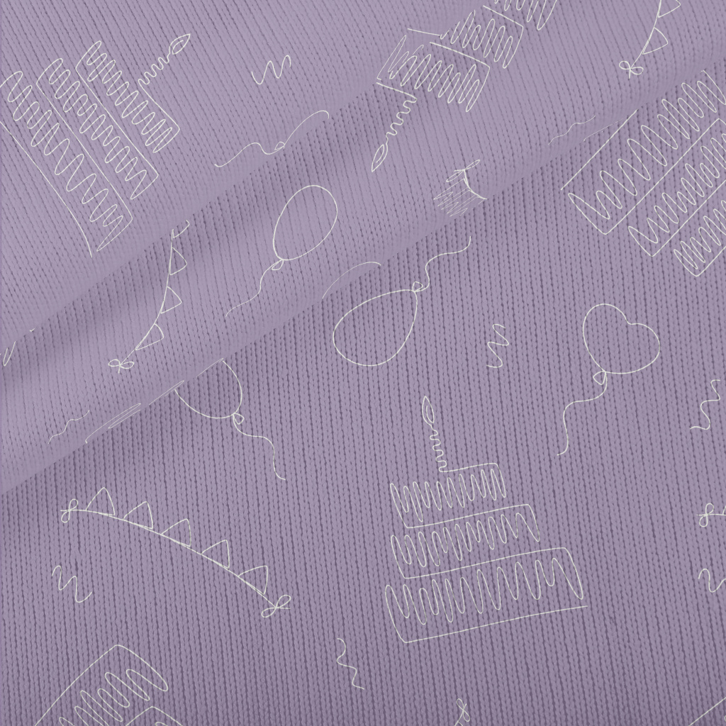 簡約線條生日蛋糕和氣球仿毛衣布(幅寬150公分)