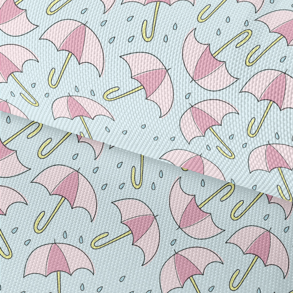 粉色雨傘和雨滴牛津布(幅寬150公分)