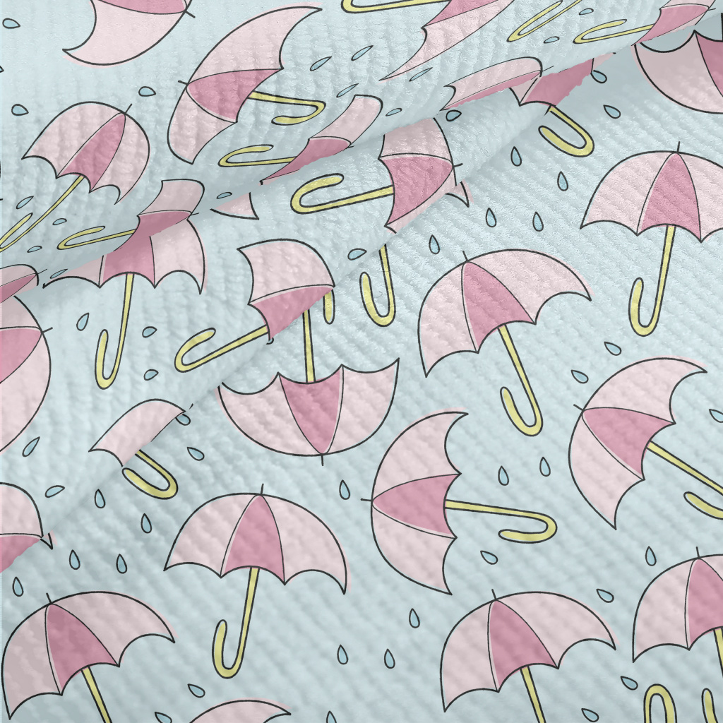 粉色雨傘和雨滴毛巾布(幅寬160公分)