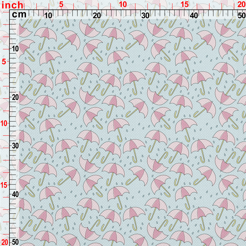 粉色雨傘和雨滴麻布(幅寬150公分)
