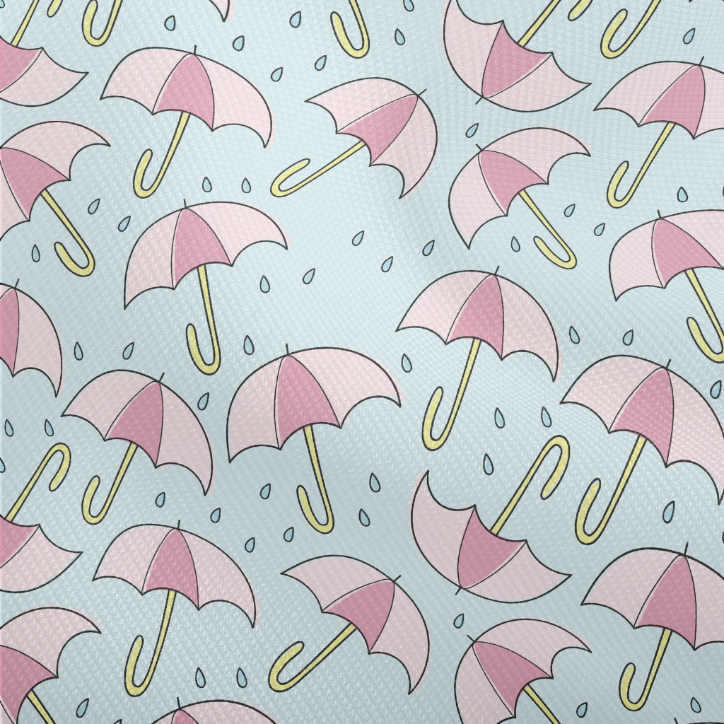 粉色雨傘和雨滴雙斜布(幅寬150公分)