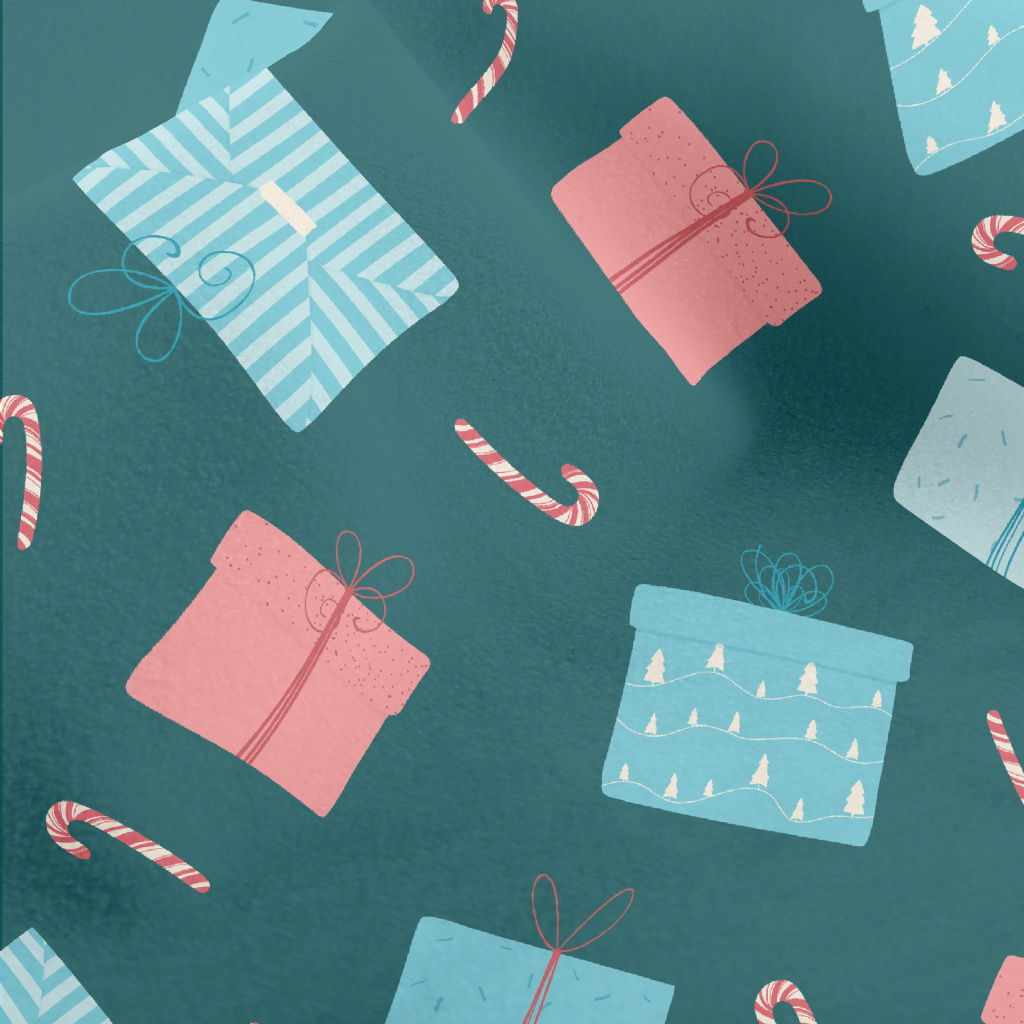 藍紅色包裝禮物與拐杖糖水晶絨(幅寬160公分)