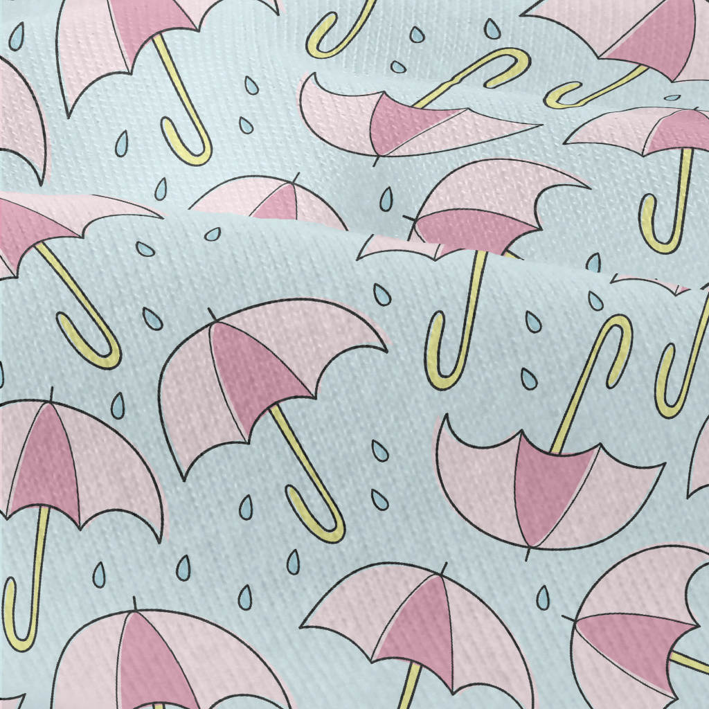 粉色雨傘和雨滴仿棉布(幅寬150公分)
