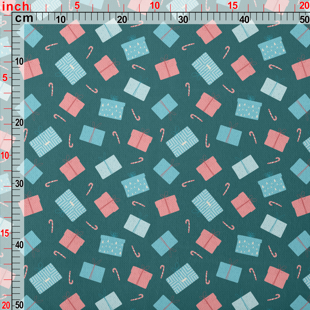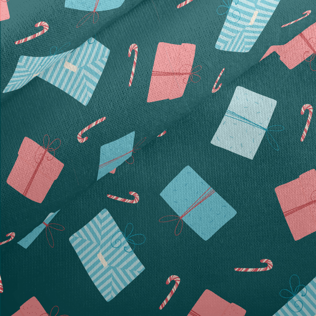藍紅色包裝禮物與拐杖糖刷毛布(幅寬150公分)