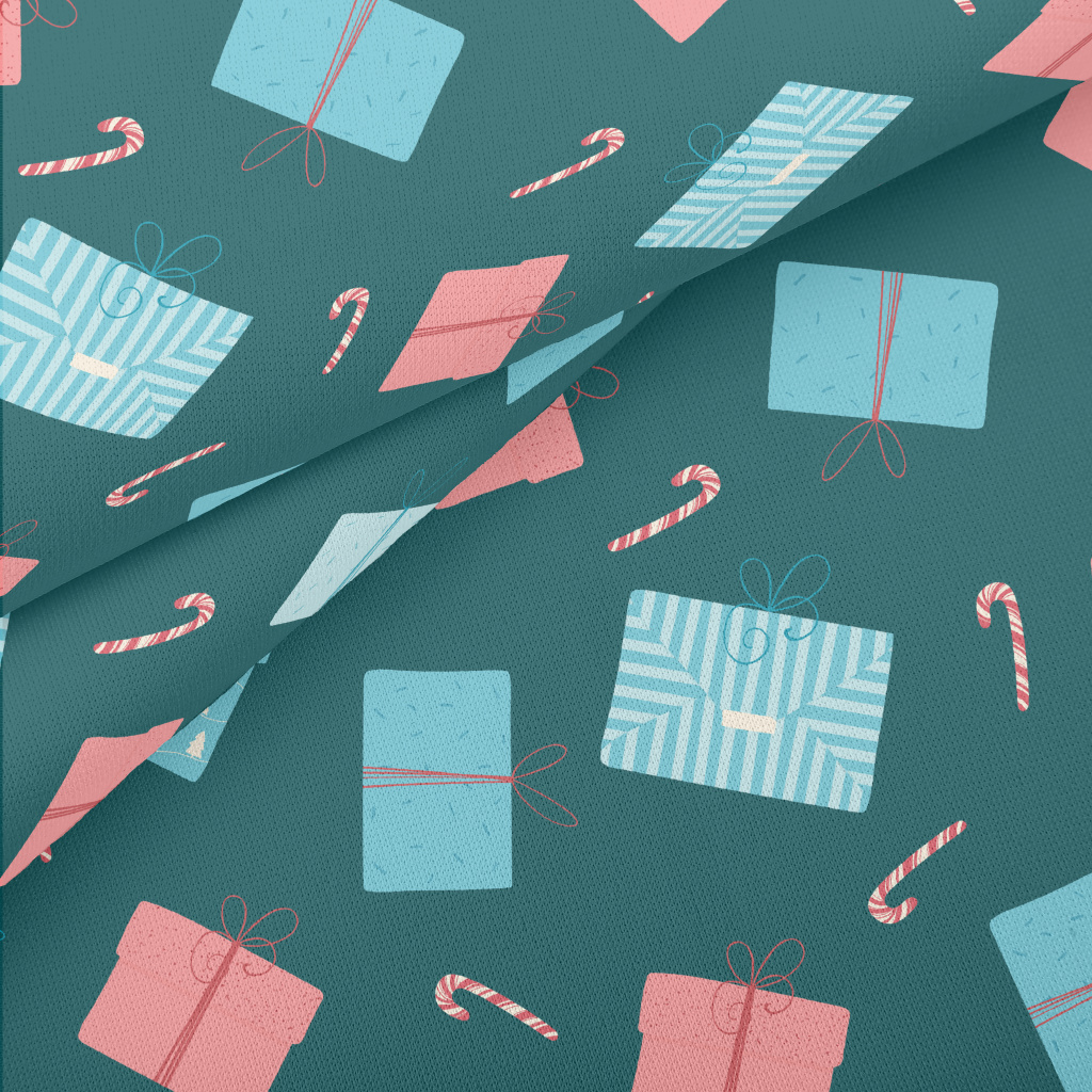 藍紅色包裝禮物與拐杖糖薄棉布(幅寬150公分)