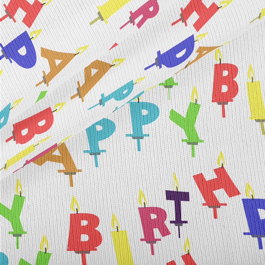彩色蠟燭生日快樂英文仿毛衣布(幅寬150公分)