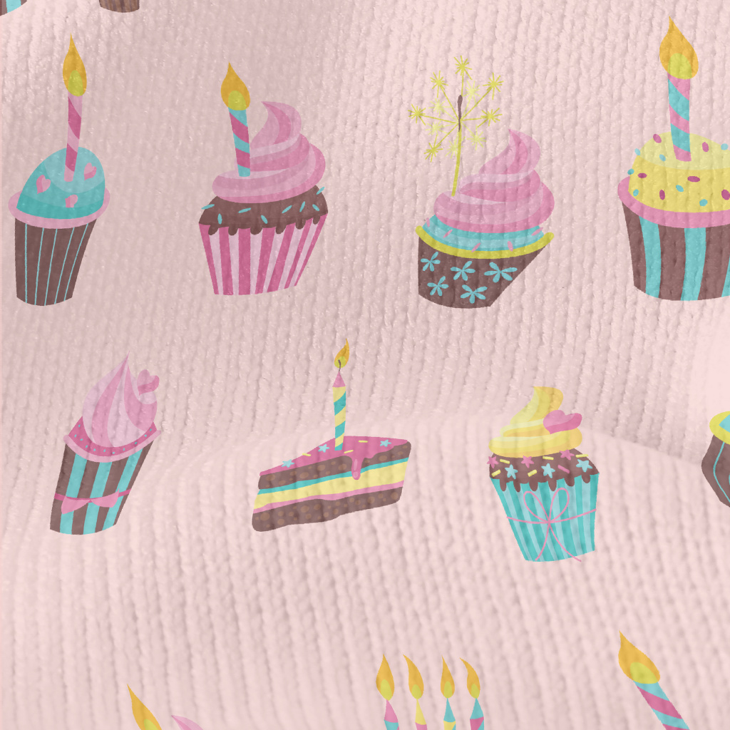 各種精緻豐富小蛋糕仿毛衣布(幅寬150公分)