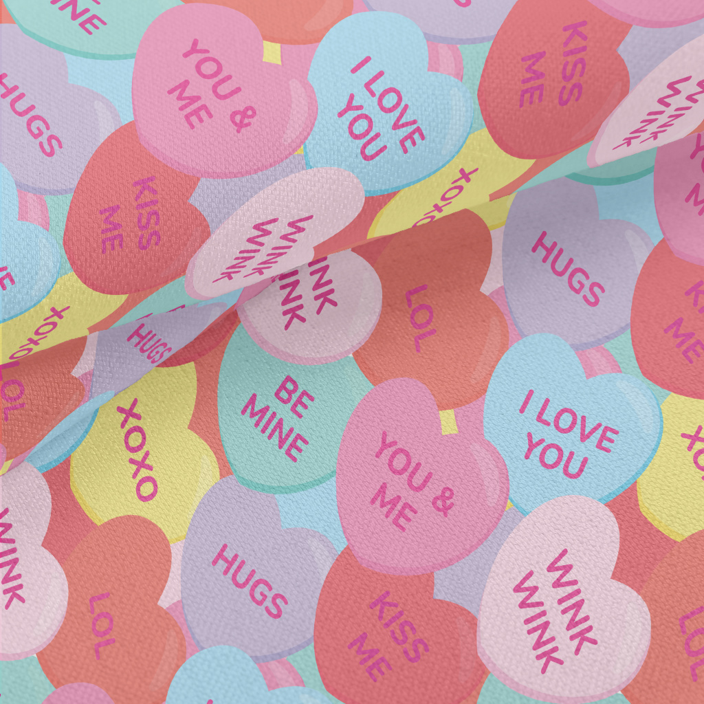 彩色各種英文愛心竹節麻(幅寬150公分)