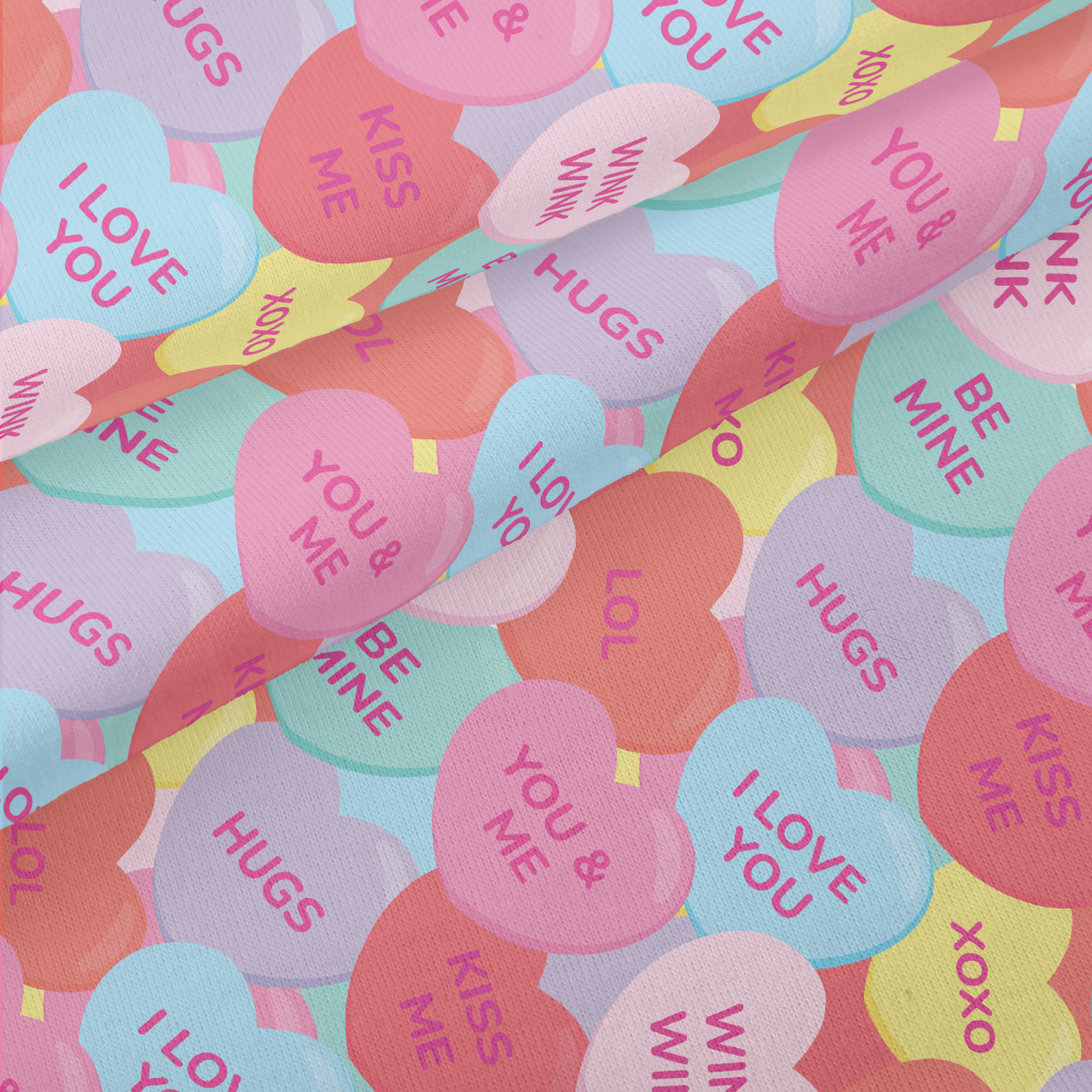 彩色各種英文愛心仿棉布(幅寬150公分)