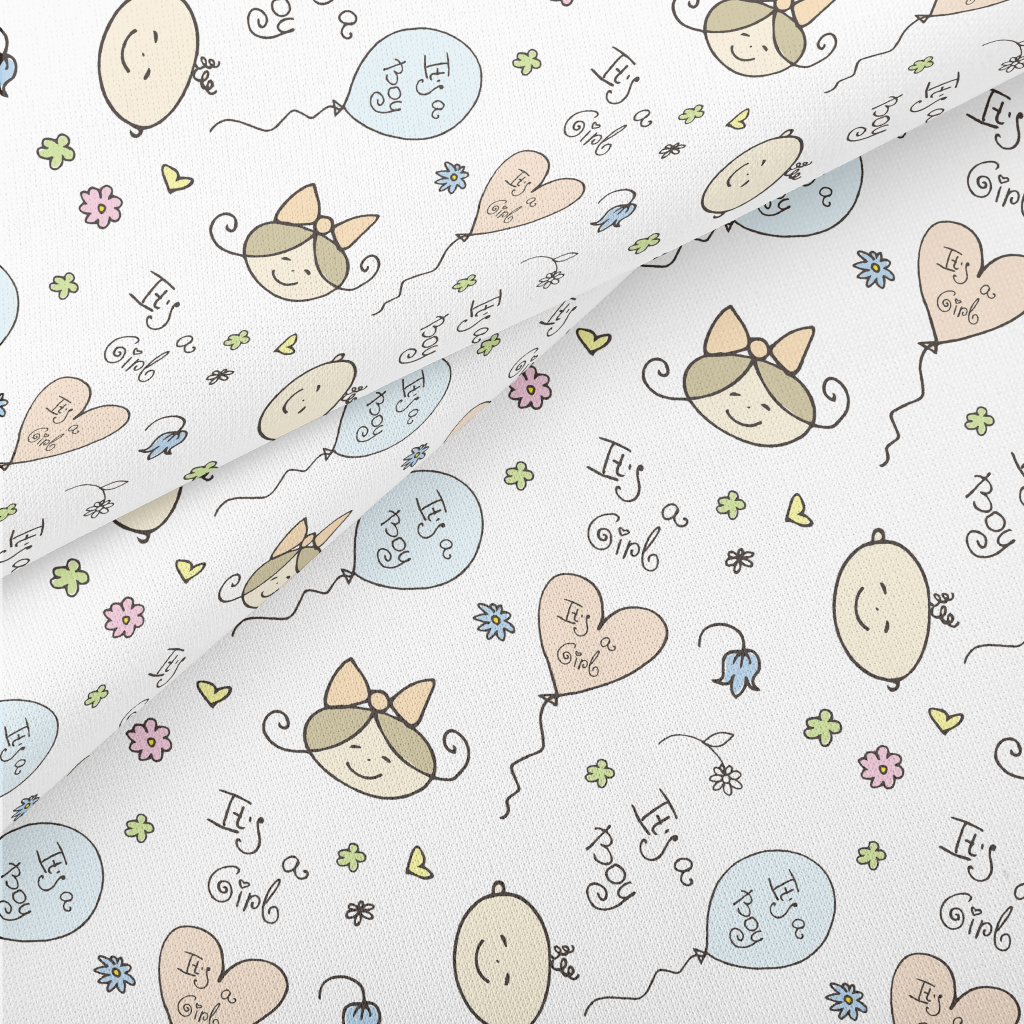 塗鴉可愛男孩女孩薄棉布(幅寬150公分)