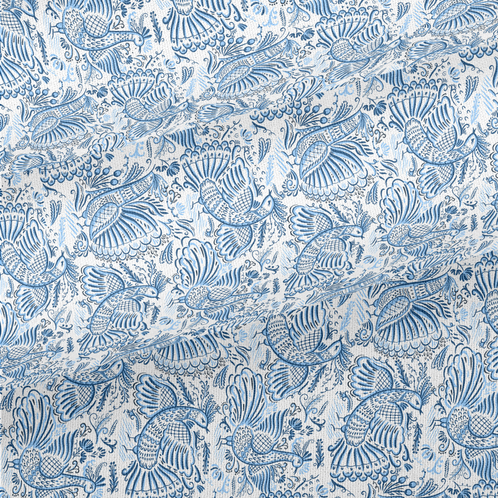 手繪精緻線條孔雀雪紡布(幅寬150公分)
