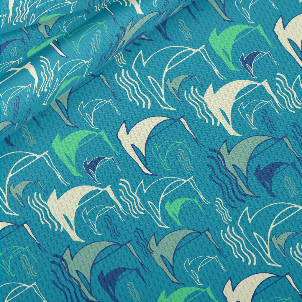 手繪乘風破浪帆船鳥眼布(幅寬160公分)