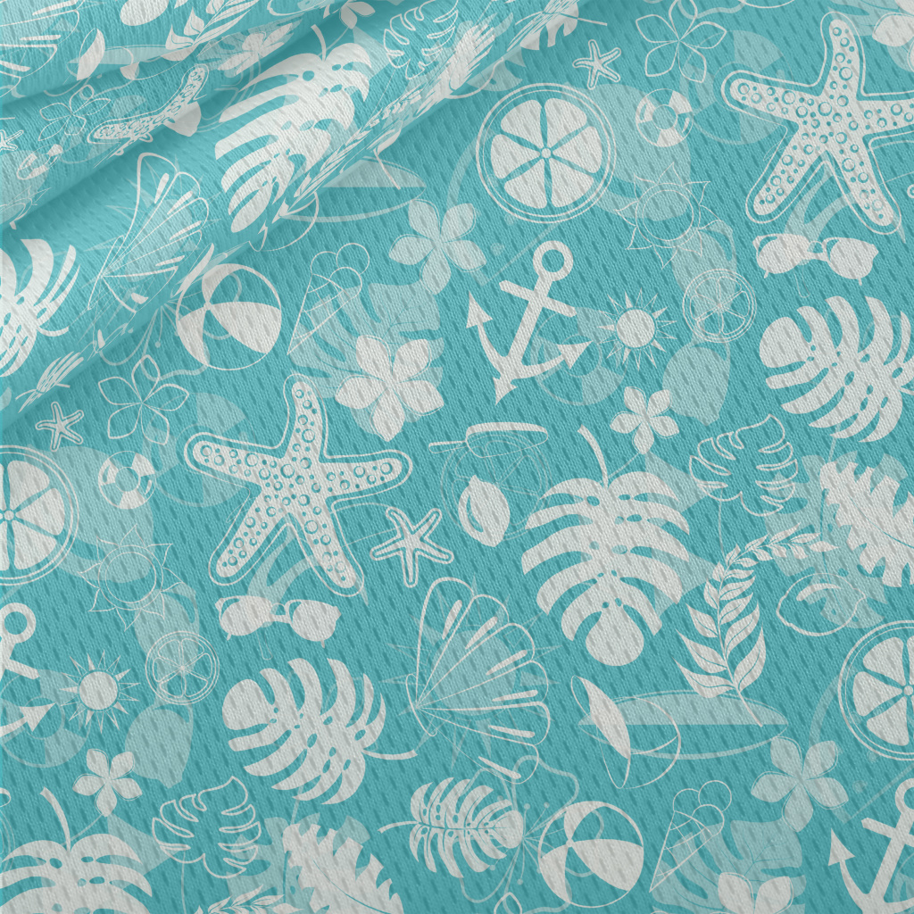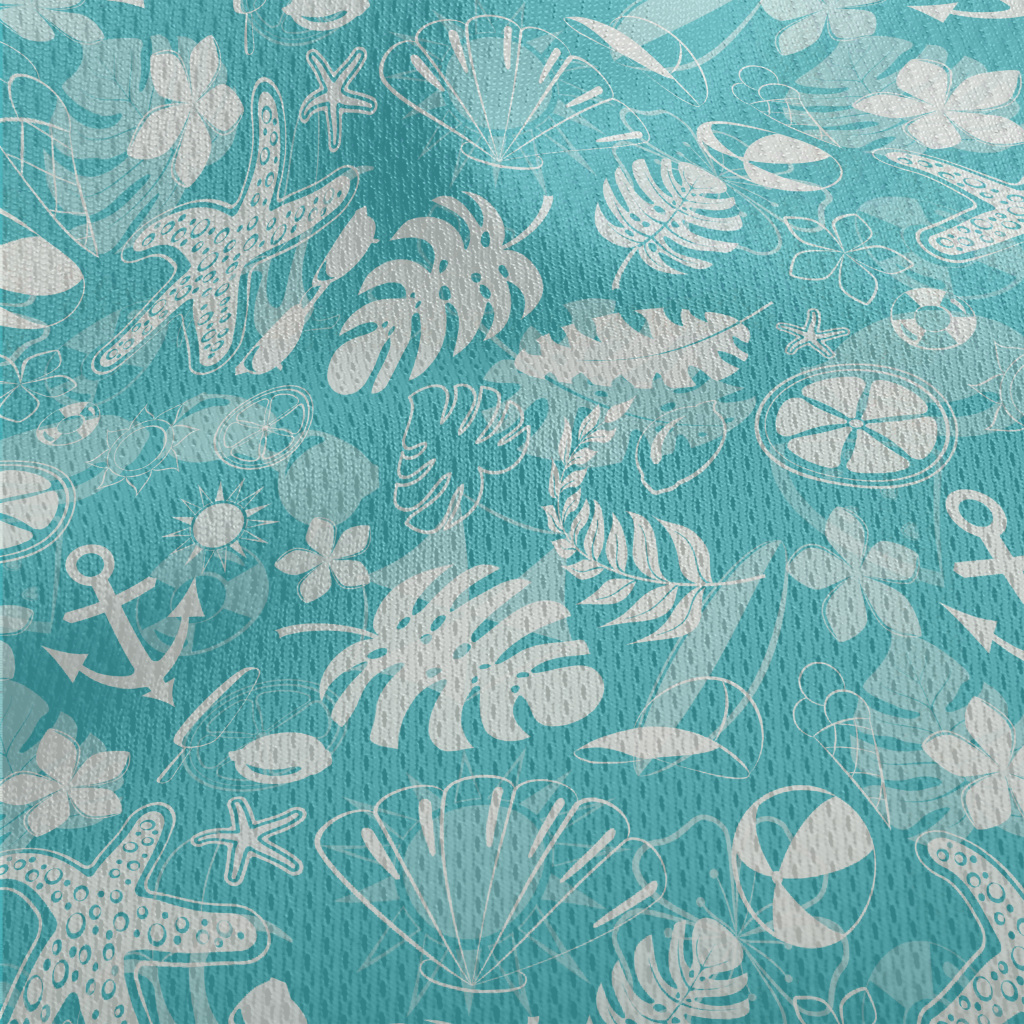 熱帶植物海星船錨海灘圖案鳥眼布(幅寬160公分)