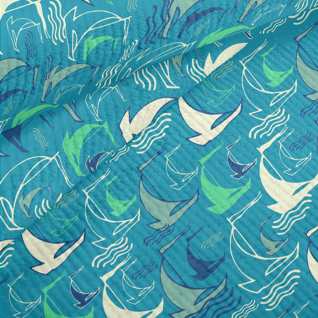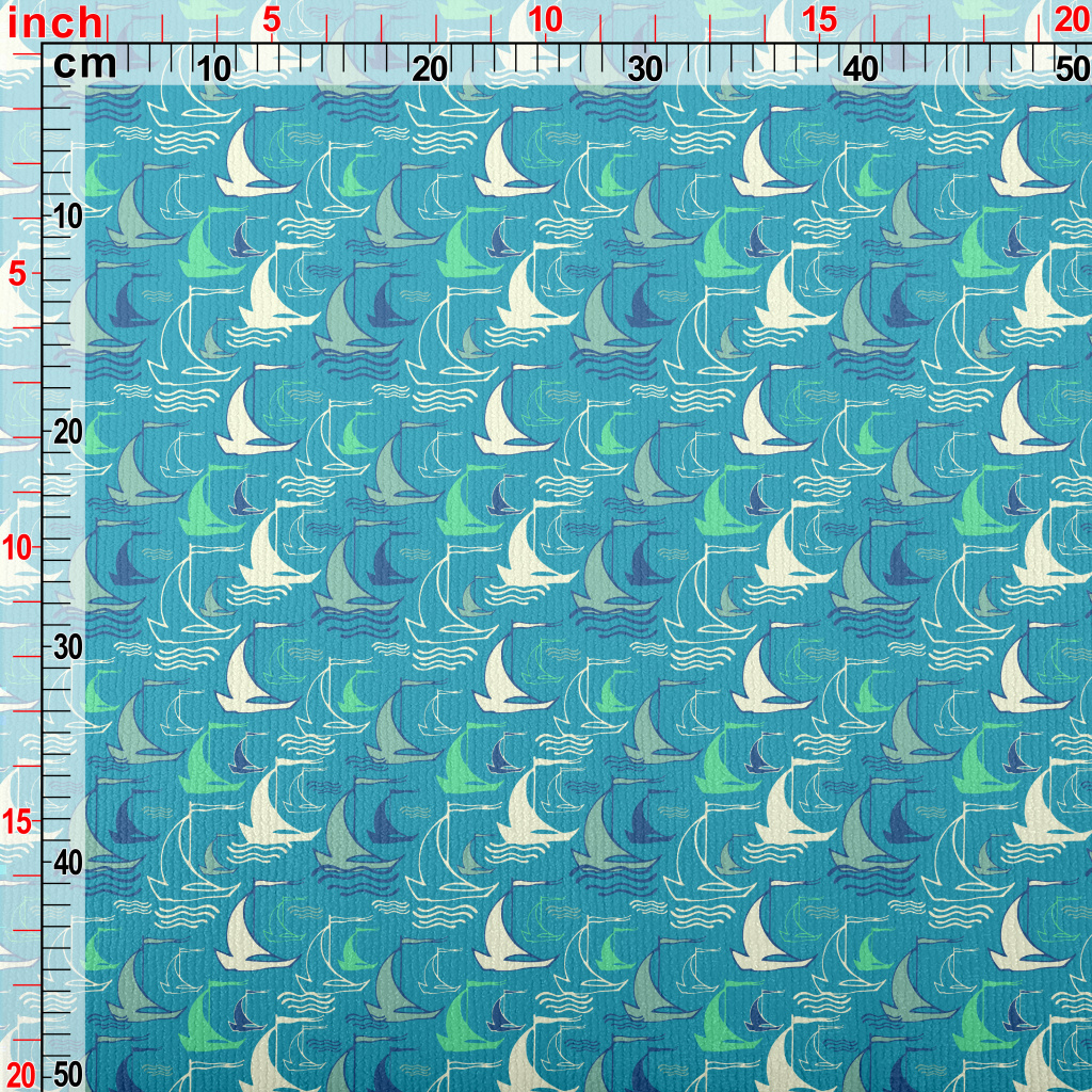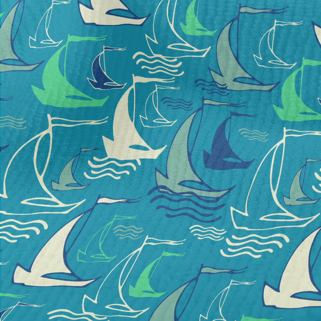 手繪乘風破浪帆船毛巾布(幅寬160公分)