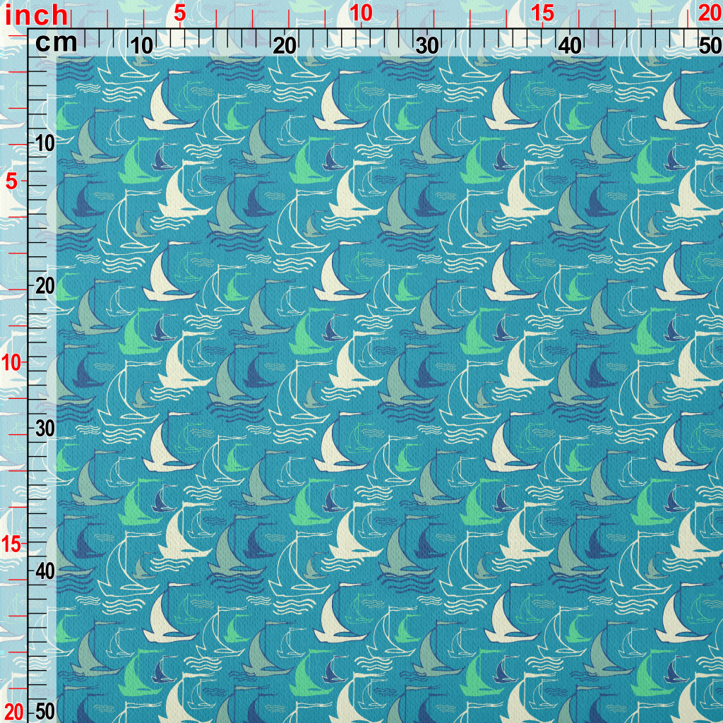 手繪乘風破浪帆船刷毛布(幅寬150公分)