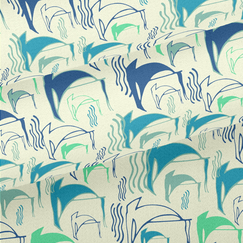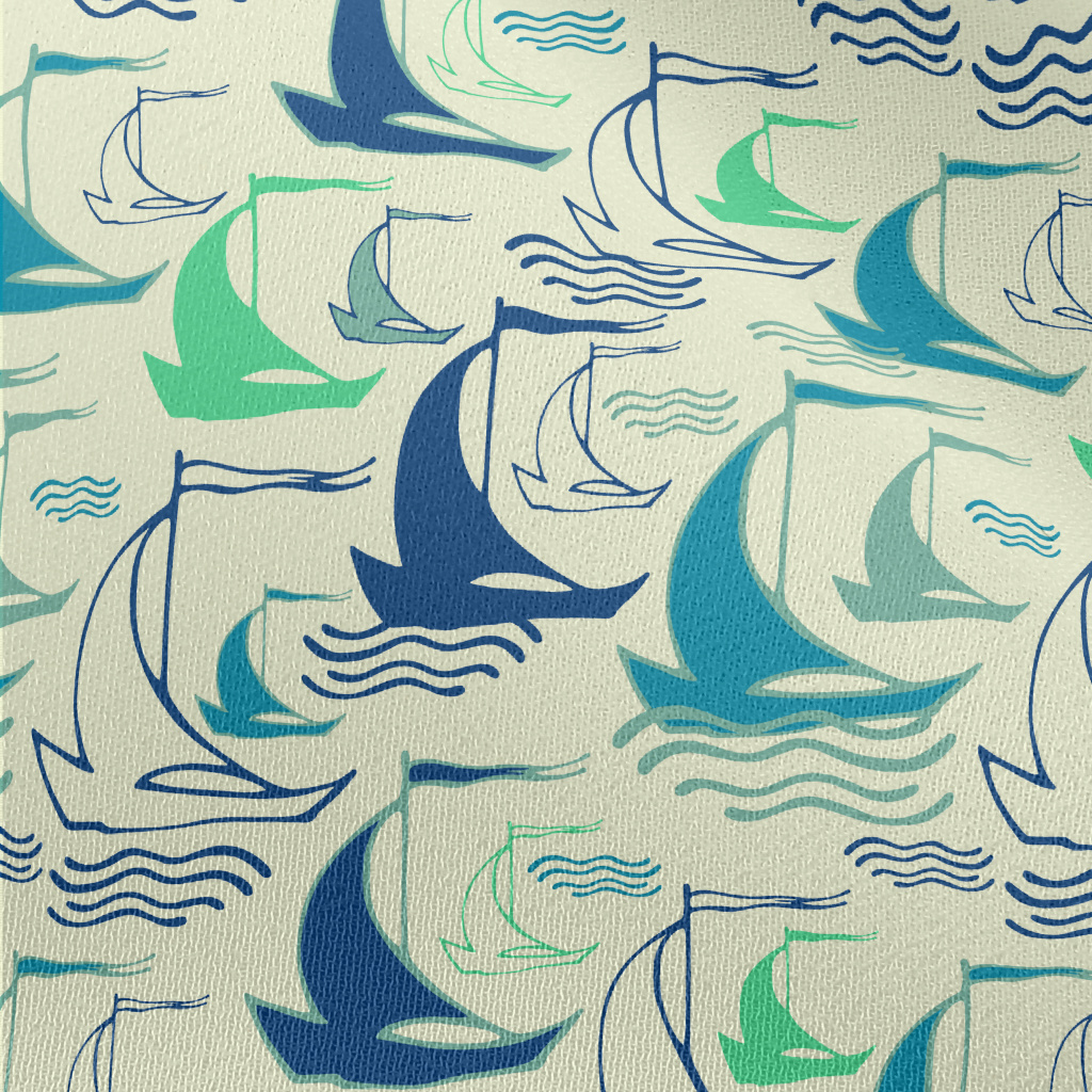 線條帆船與海浪雪紡布(幅寬150公分)