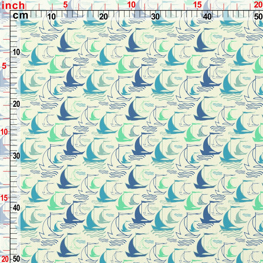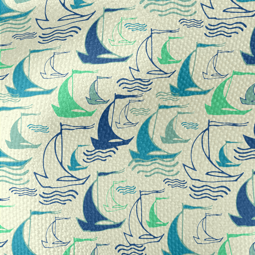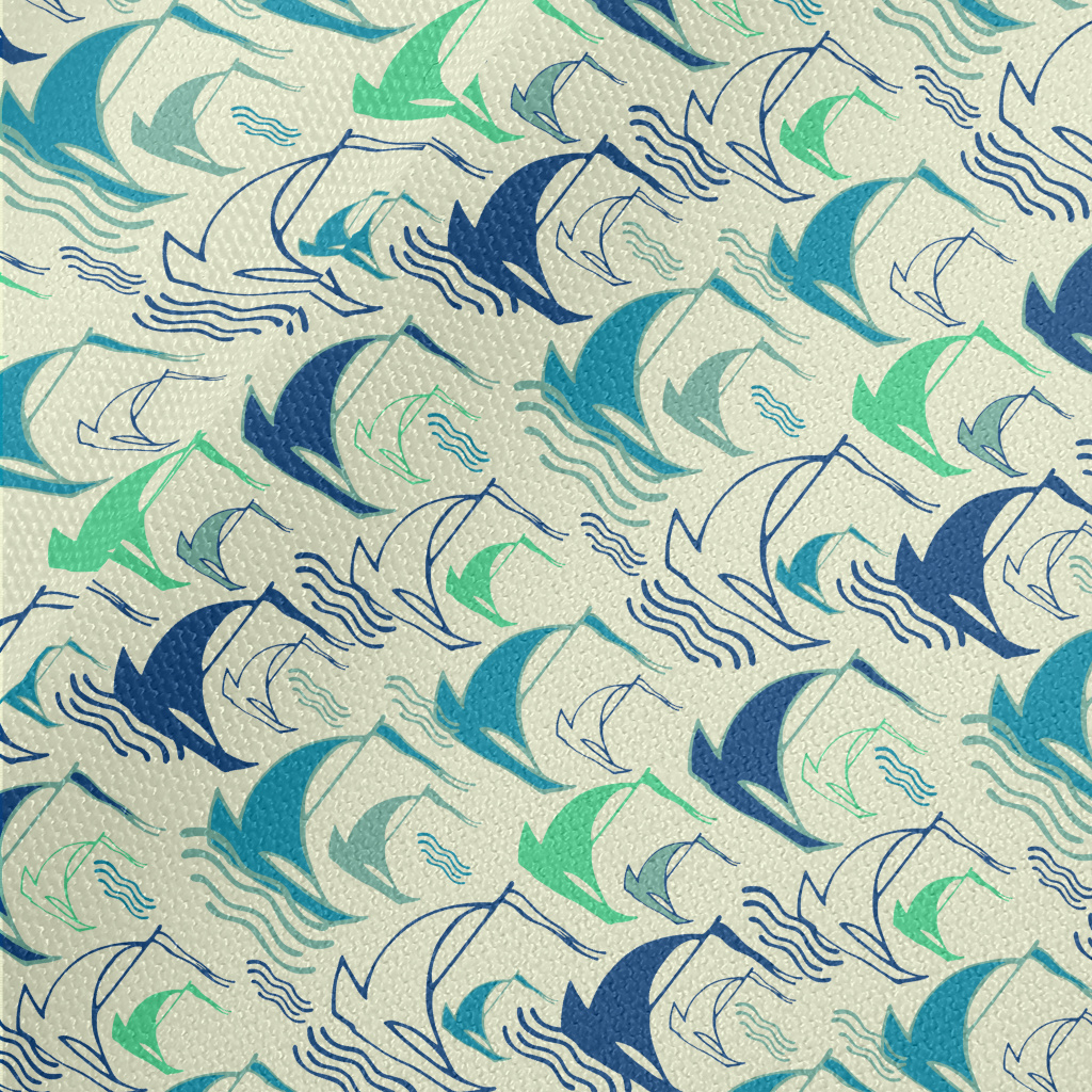 線條帆船與海浪帆布(幅寬150公分)