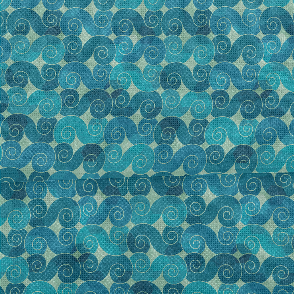 藍色復古螺旋紋圖案麻布(幅寬150公分)