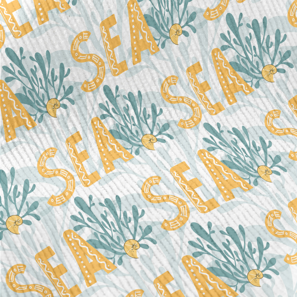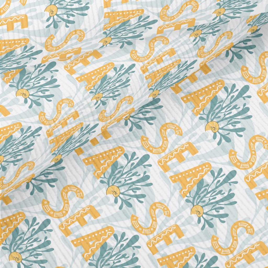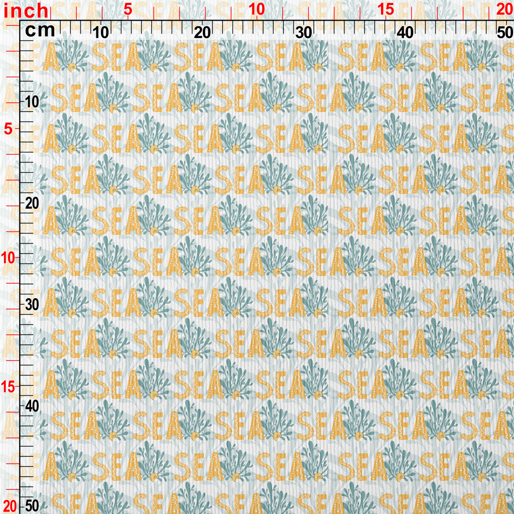 黃色海洋英文與植物燈芯絨(幅寬150公分)