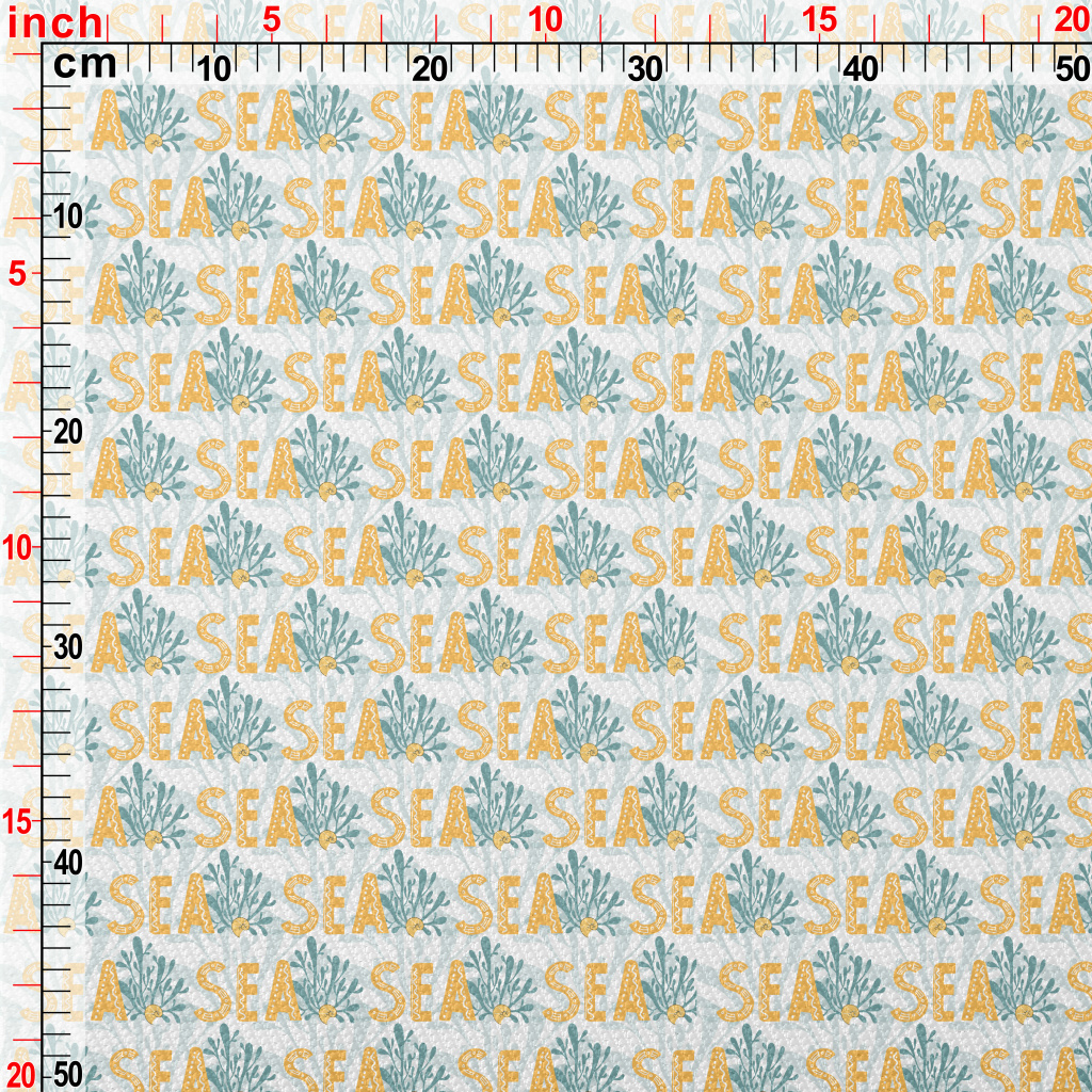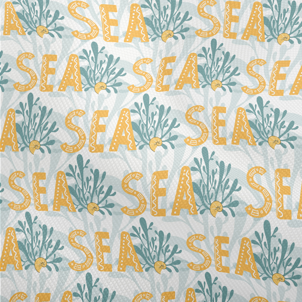 黃色海洋英文與植物雙斜布(幅寬150公分)