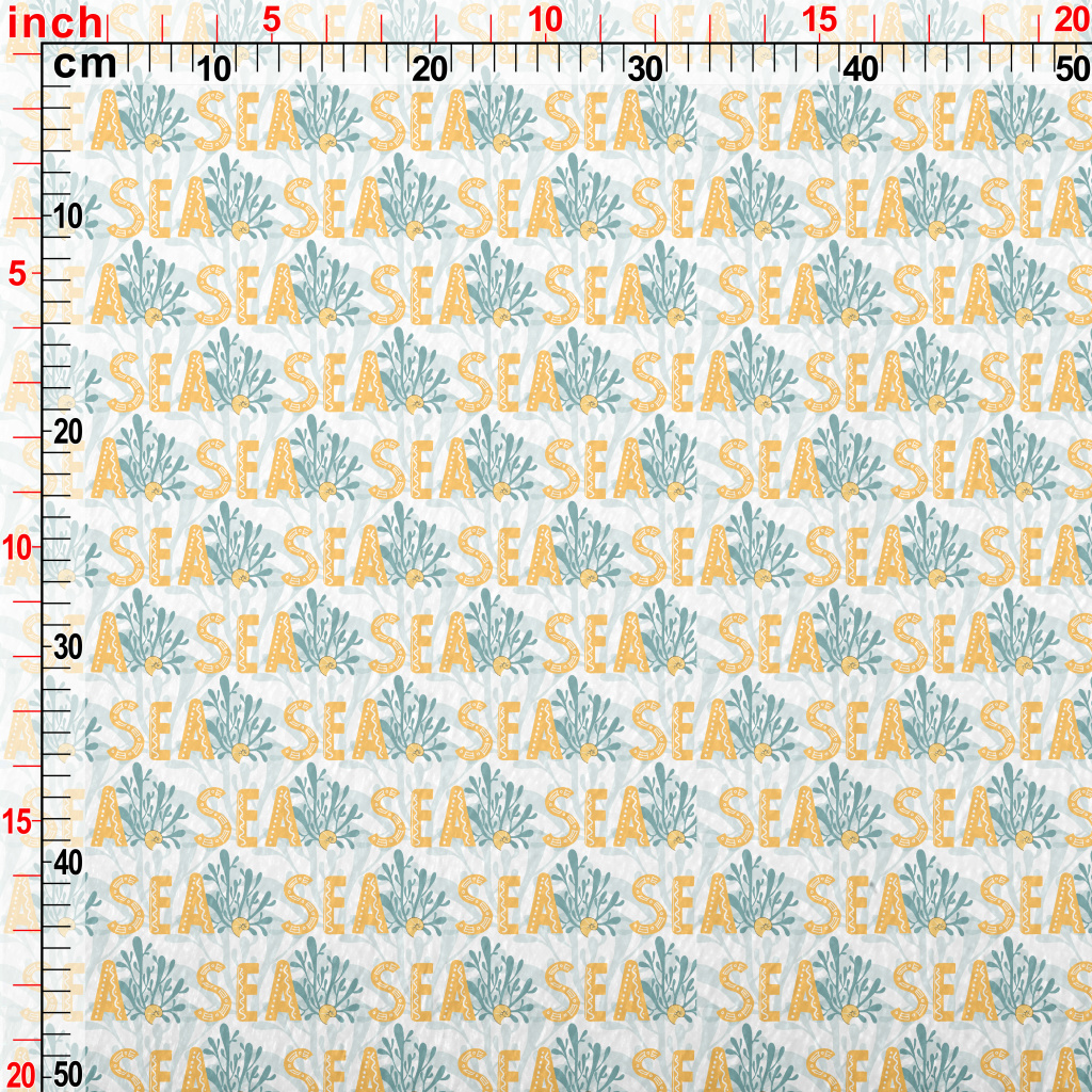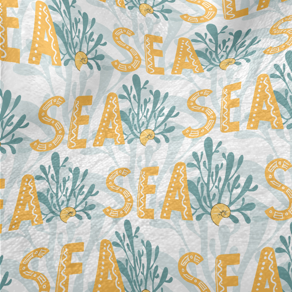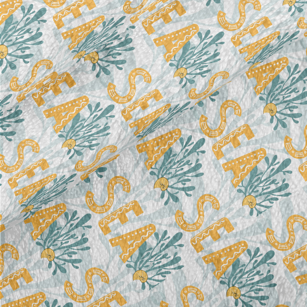 黃色海洋英文與植物法蘭絨(幅寬150公分)