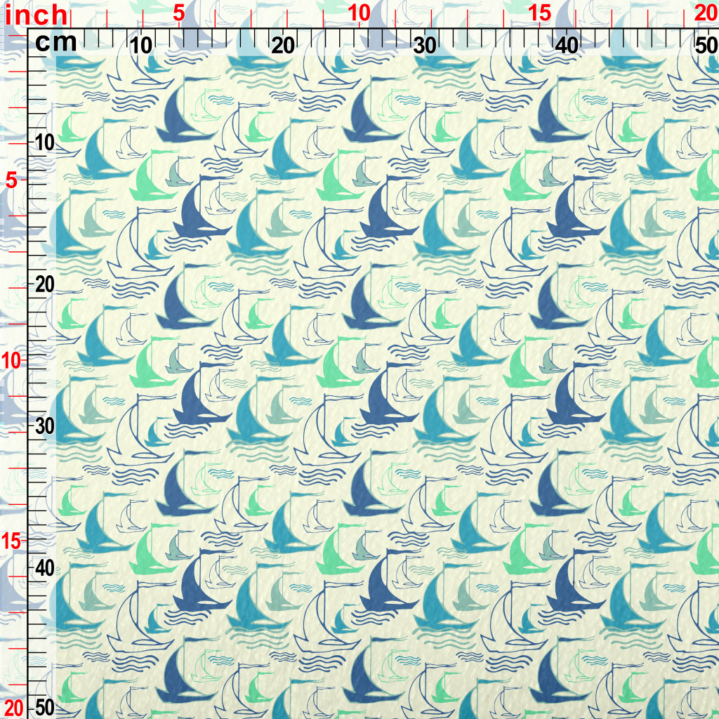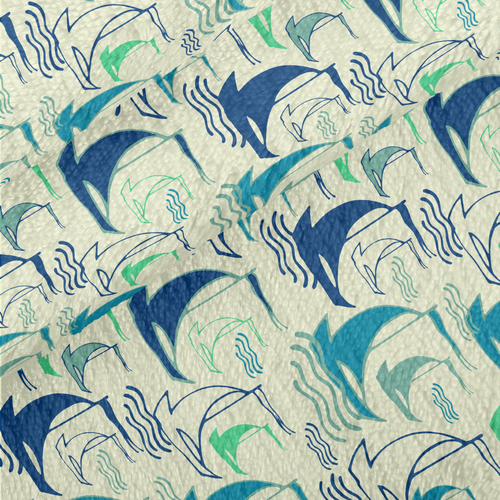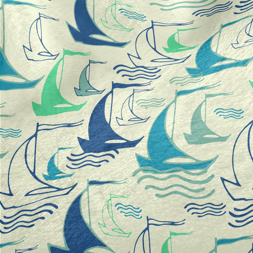 線條帆船與海浪法蘭絨(幅寬150公分)